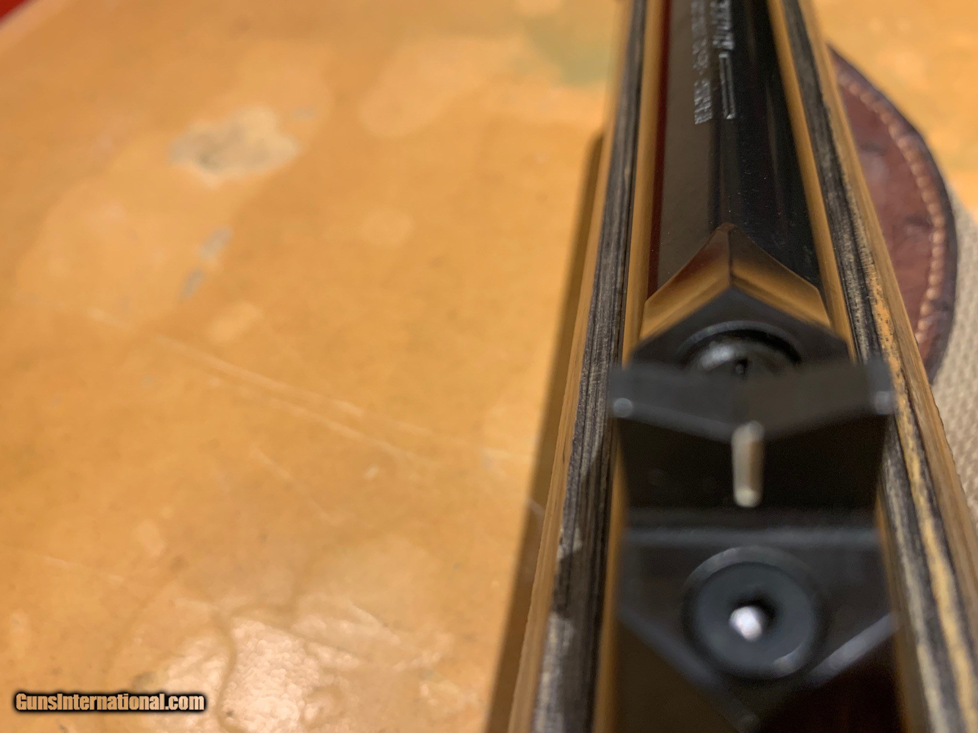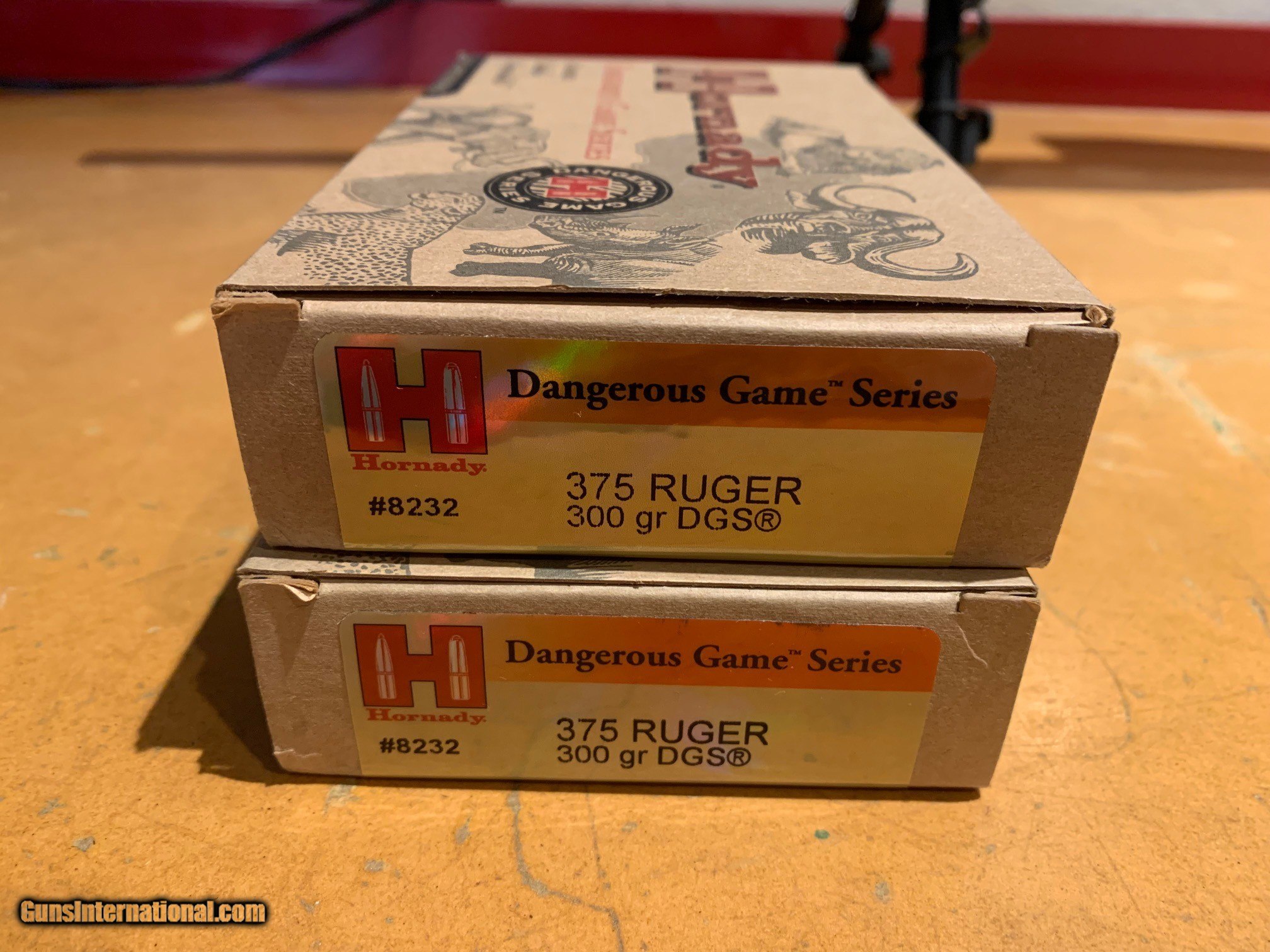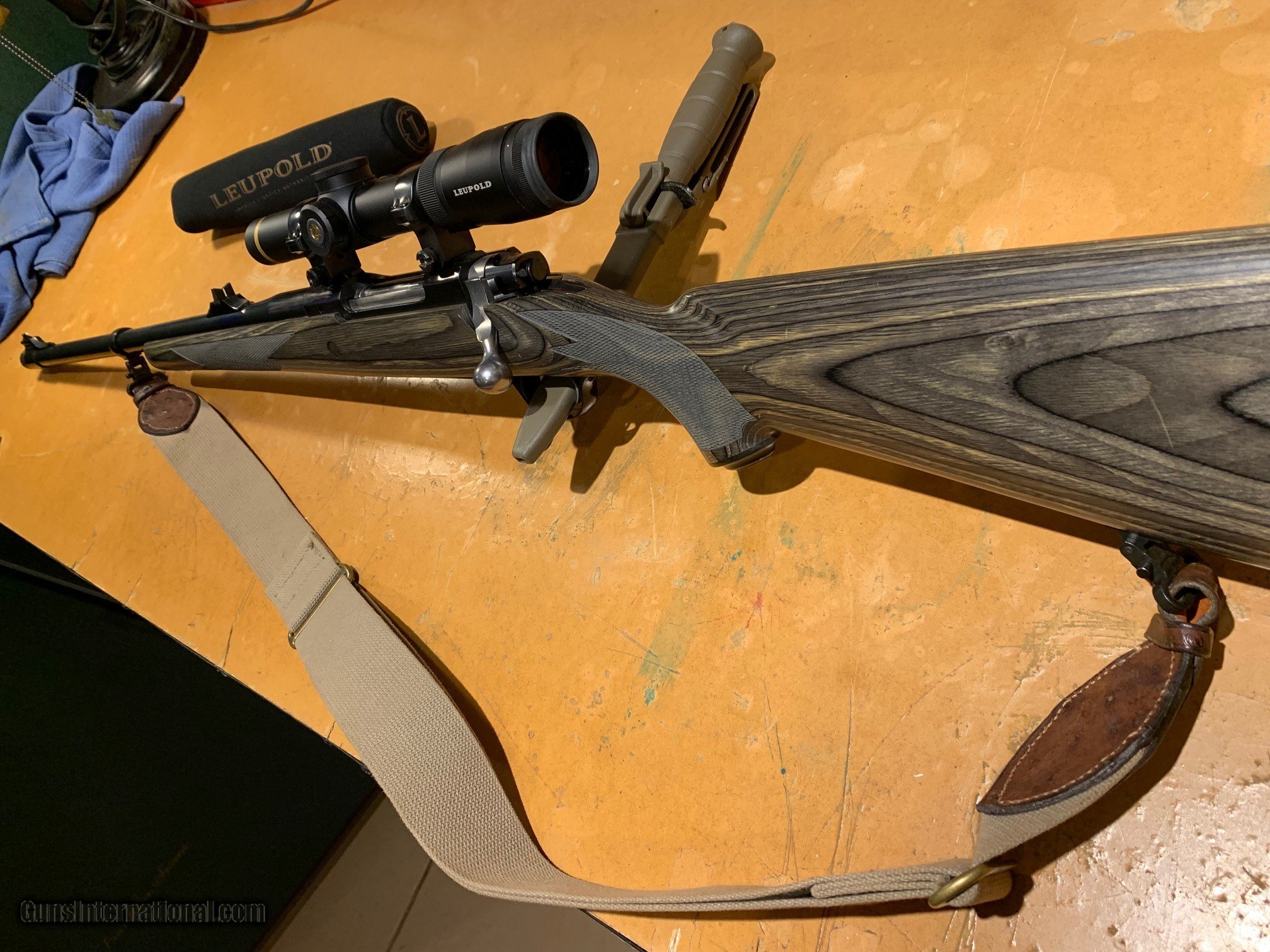 Description: COMPLETE AFRICAN HUNTING PACKAGE Ruger Left Hand Bolt Action M77 Hawkeye Mauser style controlled round feed safari rifle. Holds 3 in the magazine and 1 in the chamber. Express style iron sights with a Leupold VX6 1-6 Illuminated duplex reticle in a set of high 30mm rings. Grey laminate stock professionally bedded. Barrel band and inlet swivel for included canvas/leather sling. Threaded barrel can have a Capped end (in photo) or a harmonic tuner or suppressor (all included). Outstanding accuracy with 300 gr ammo. Package includes 40 rnds of Hornady 300 gr solid ammunition. $ 1,700 delivered SOLD Rifle Caliber: .375 Ruger |