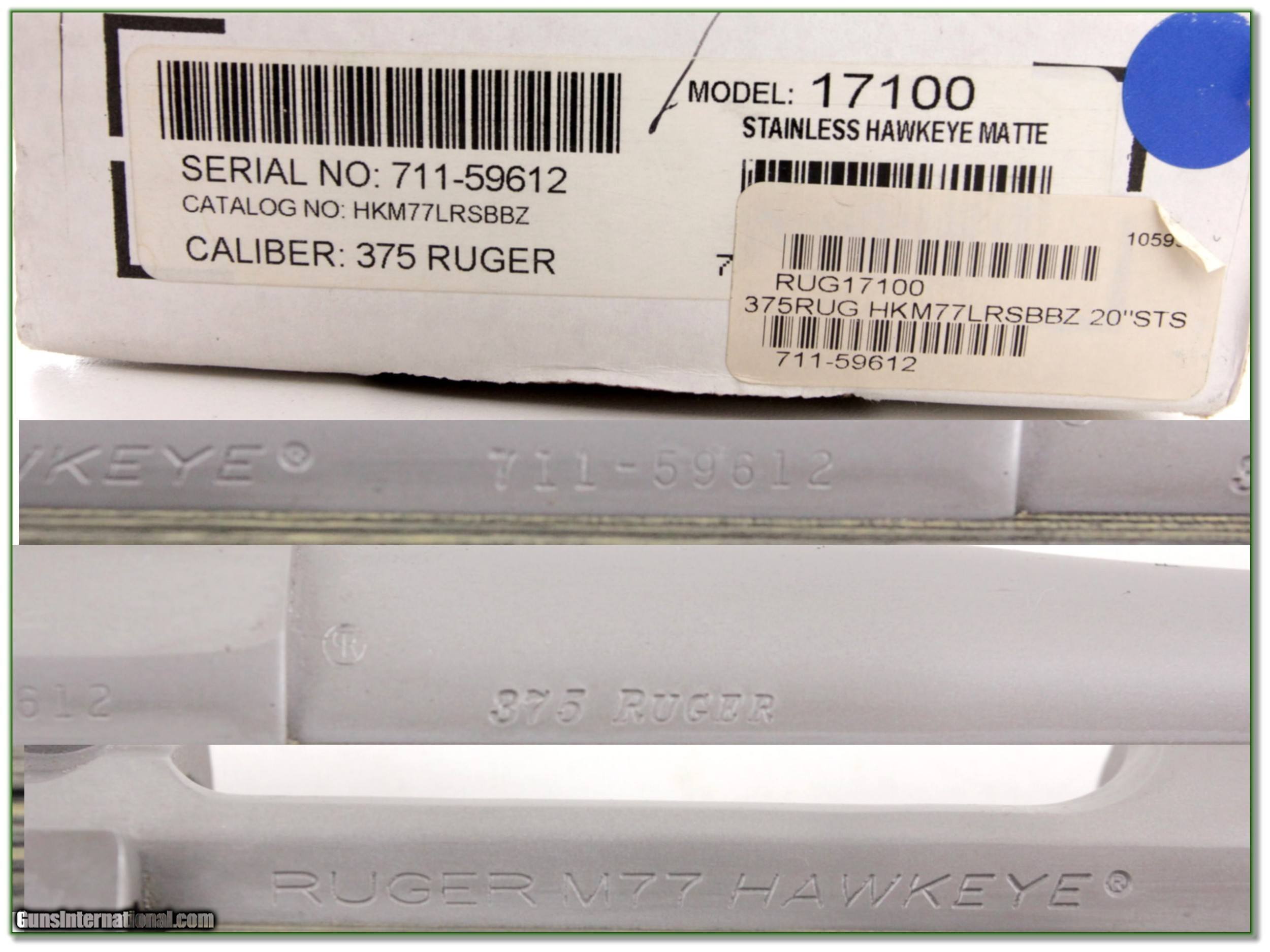Ruger 77 Hawkeye LH 375 Ruger Stainless ANI for sale