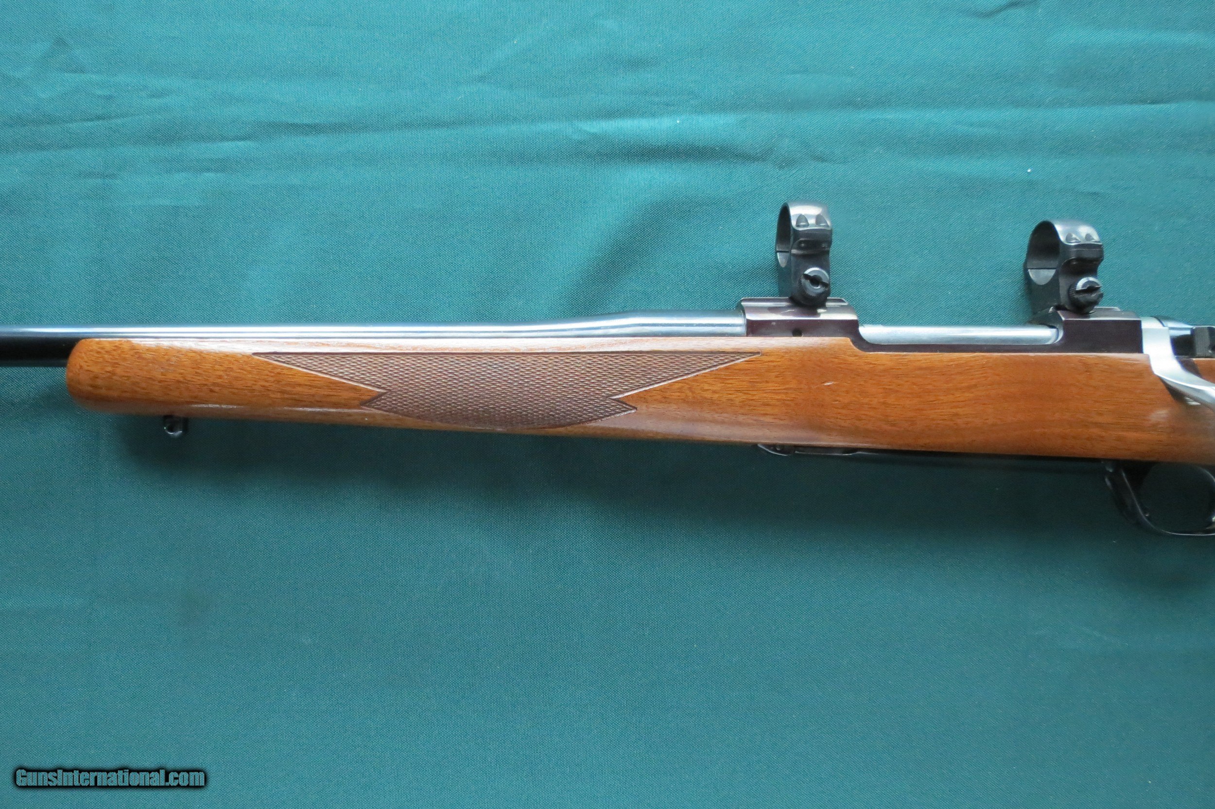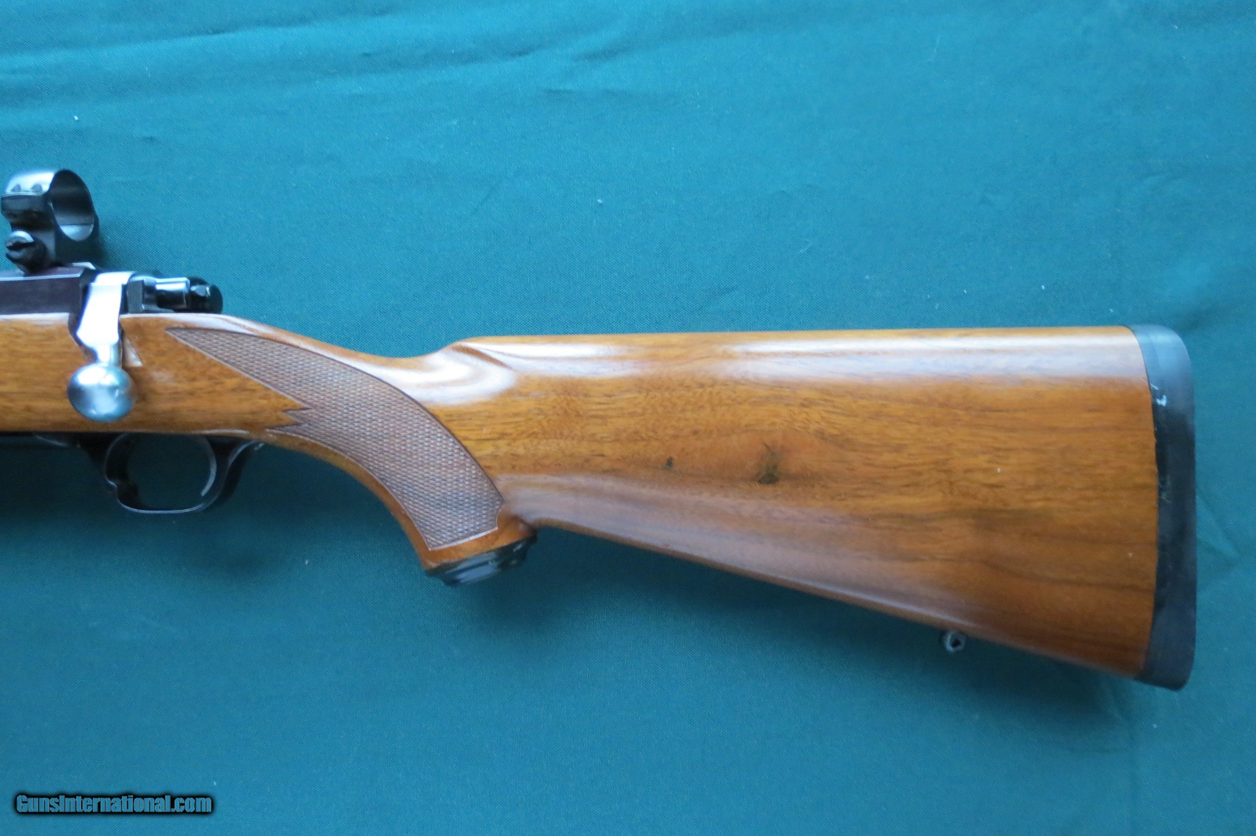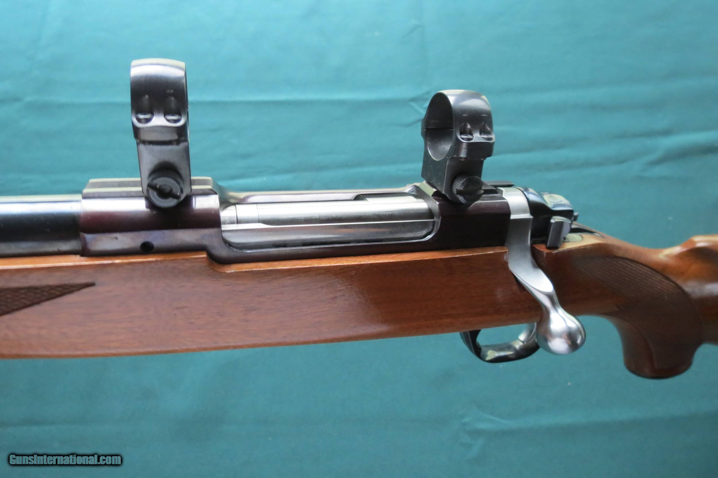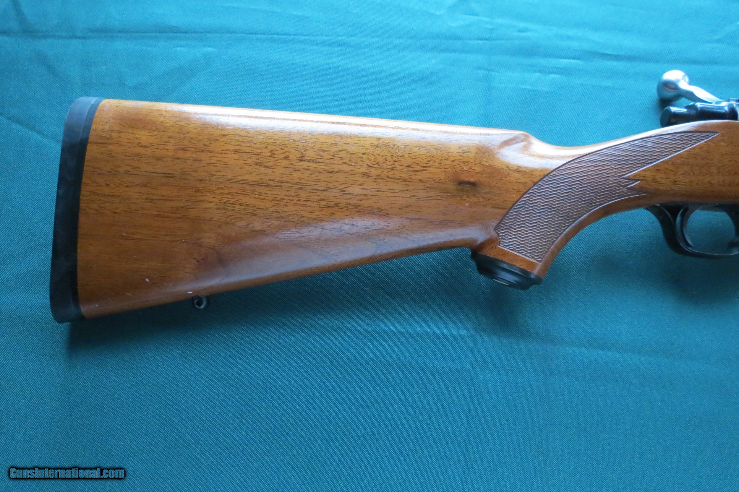 Description: Rare Find Ruger M77 Mark II Left Hand in 257 Roberts, Evolutionary design of the Ruger Model 77R featuring slenderized proportioning, 3-position swing-back safety, trigger guard and hinged floorplate, stainless steel bolt with Mauser extractor design, 24" barrel, integral scope bases, hand checkered American Walnut stock, 1" rings, sling swivel studs. Wood shows some field use, blueing very good. Nice rifle in hard to find left hand 257 Roberts. Shipping/insurance $40 shipped in hardcase add $20 SOLD Rifle Caliber: .257 Roberts Manufacturer: Ruger Model: M77 Mark II Left Hand Barrel Length: 24 Condition: Very Good |