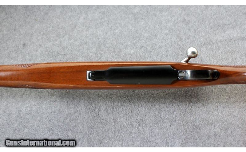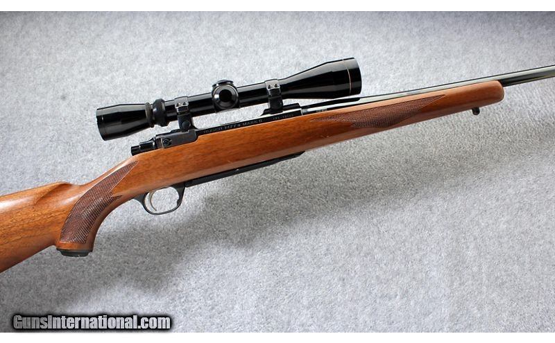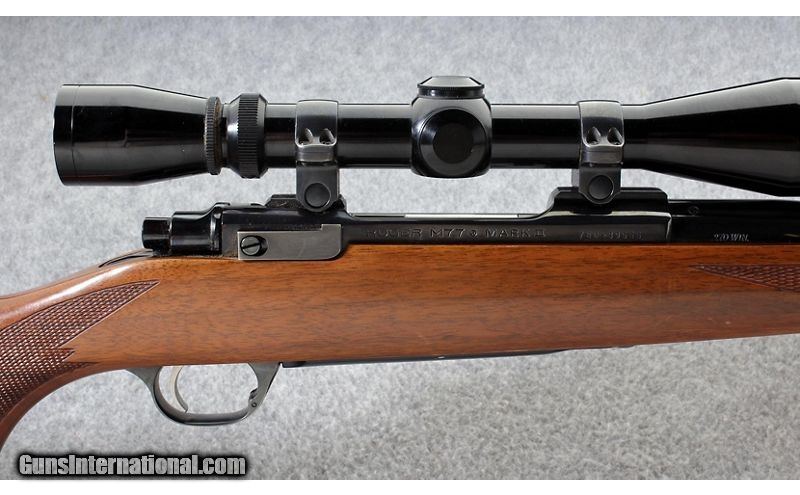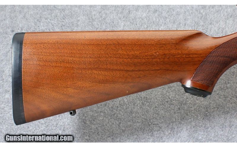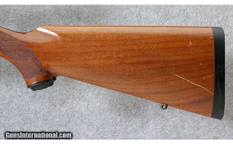 Description: The Ruger M77 Mark II is a solid performer. This rifle features: left-handed control round feed action, large Mauser style claw extractor, a three-position safety, hinged floor plate, walnut stock and bright blue finished metal. With the Leupold scope you have a great hunting setup. Manufactured 1991. .270 Winchester SOLD Metal Condition: Very good with a few scratches Wood Condition: Very good overall with a large scratch on the left side of the butt Bore Condition: Excellent Barrels: 22 inch barrel Stock Dimensions: 13 5/8 inch LOP Fore End: Checkered walnut Butt Pad: Ruger pad Weight: 8 Lbs. 2 Oz. Sights: Leupold Vari-X II 3-9x scope Item Location: Lehi, UT |