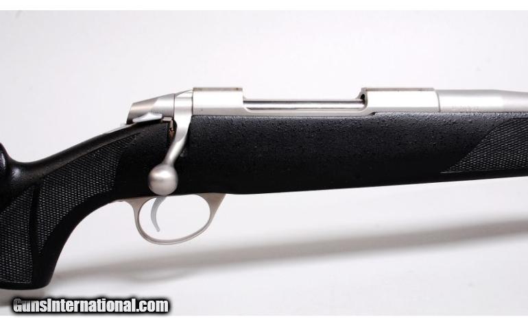 Description: SOLD Caliber Info: .25-06. Wood Condition: Stainless receiver with a 2-position safety and cocking indicator. Bore Condition: Bright and polished. Barrels: 26" crowned stainless steel barrel with no sights. Triggers: Serrated. Stock: Composite left-hand stock with a checkered left-hand palm swell, left-hand cheek piece, and sling stud BUT RIGHT-HAND BOLT. Stock Dimensions: LOP: 13 5/8". Fore End: Checkered with sling stud. Butt Pad: Black rubber Decelerator recoil pad. Weight: 8 lbs. Sights: Integral Sako tapered mounts only. Extras: Barrel marked with the name " D. Koch". Item Location: Buda, TX |