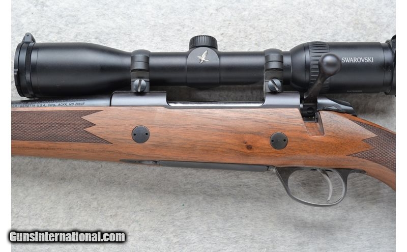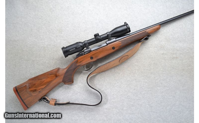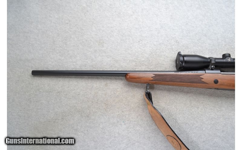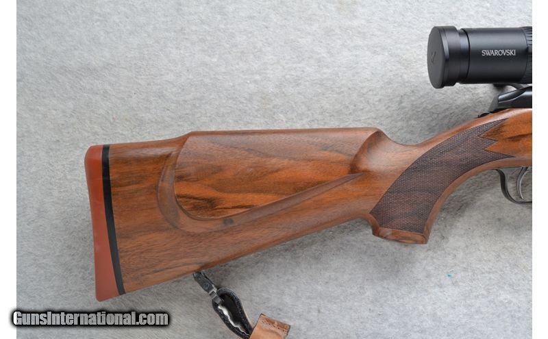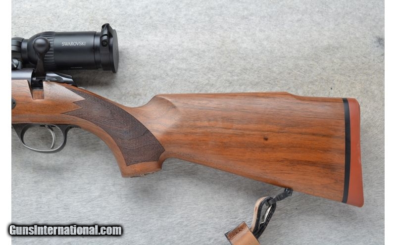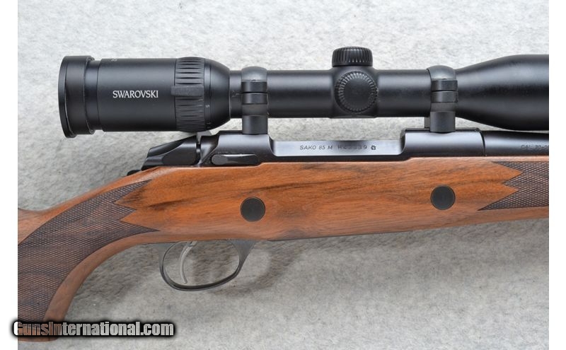 Description: This Sako Model 85 M is a left-hand bolt action rifle in .30-06 Sprg. Cal. It has a 22 inch barrel. Outfitted with a Swarovski Scope. No iron sights. The checkered grip walnut butt stock is a pistol grip with a raised cheek piece and left hand palm swell. The forearm is a checkered grip walnut. It comes with a leather sling. .30-06 Springfield SOLD Chambers: 4 round detachable magazine. Metal Condition: Excellent. Wood Condition: Excellent. Bore Condition: Excellent. Barrels: 22 inch barrel. Triggers: Grooved. Stock Dimensions: LOP 13 3/4 inches. Fore End: Checkered grip walnut. Butt Pad: Sako red rubber pad. Weight: 8 lbs. 11 oz. Sights: Swarovski Z6 1.7-10x42 Scope. No iron sights. Item Location: Richfield, WI |