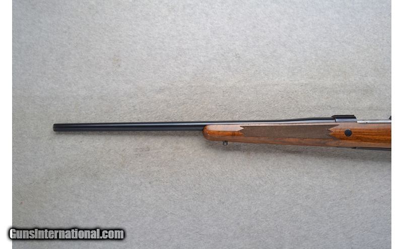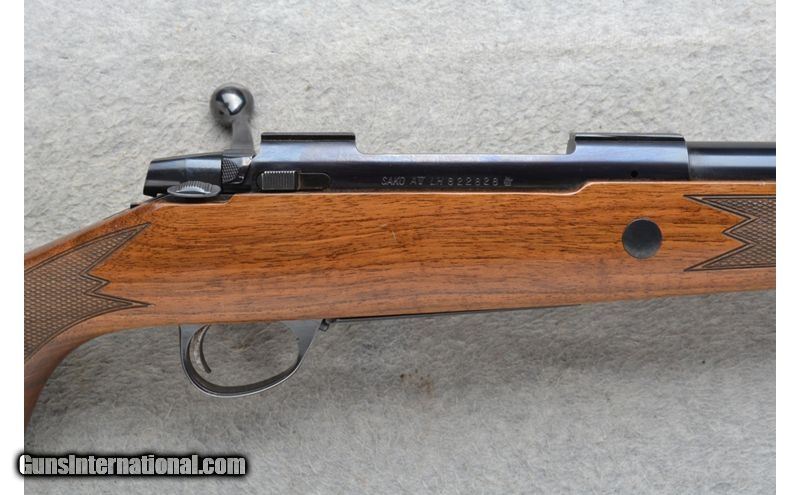 Description: This Sako Model AV is a Left Hand bolt action rifle in .270 Win. Cal. It has a 23 inch barrel. There is an integral scope mount base. No iron sights. The butt stock is a checkered grip walnut pistol grip with a raised cheek piece. The forearm is a checkered grip walnut. Made in Finland. .270 Winchester SOLD Chambers: Left Hand bolt action 4 round internal magazine with a hinged floor plate. Metal Condition: "Barrel has a little blue wear at the bore, two spots on top of the barrel and trigger guard. Trigger has minor rust. Wood Condition: Good with light handling marks. Bore Condition: Excellent. Barrels: 23 inch. Triggers: Grooved. Stock Dimensions: LOP 14 inches. Fore End: Checkered grip walnut. Butt Pad: Sako red rubber pad. Weight: 7 lb. 10 oz. Sights: Has an integral scope mount base. No iron sights. Item Location: Richfield, WI |