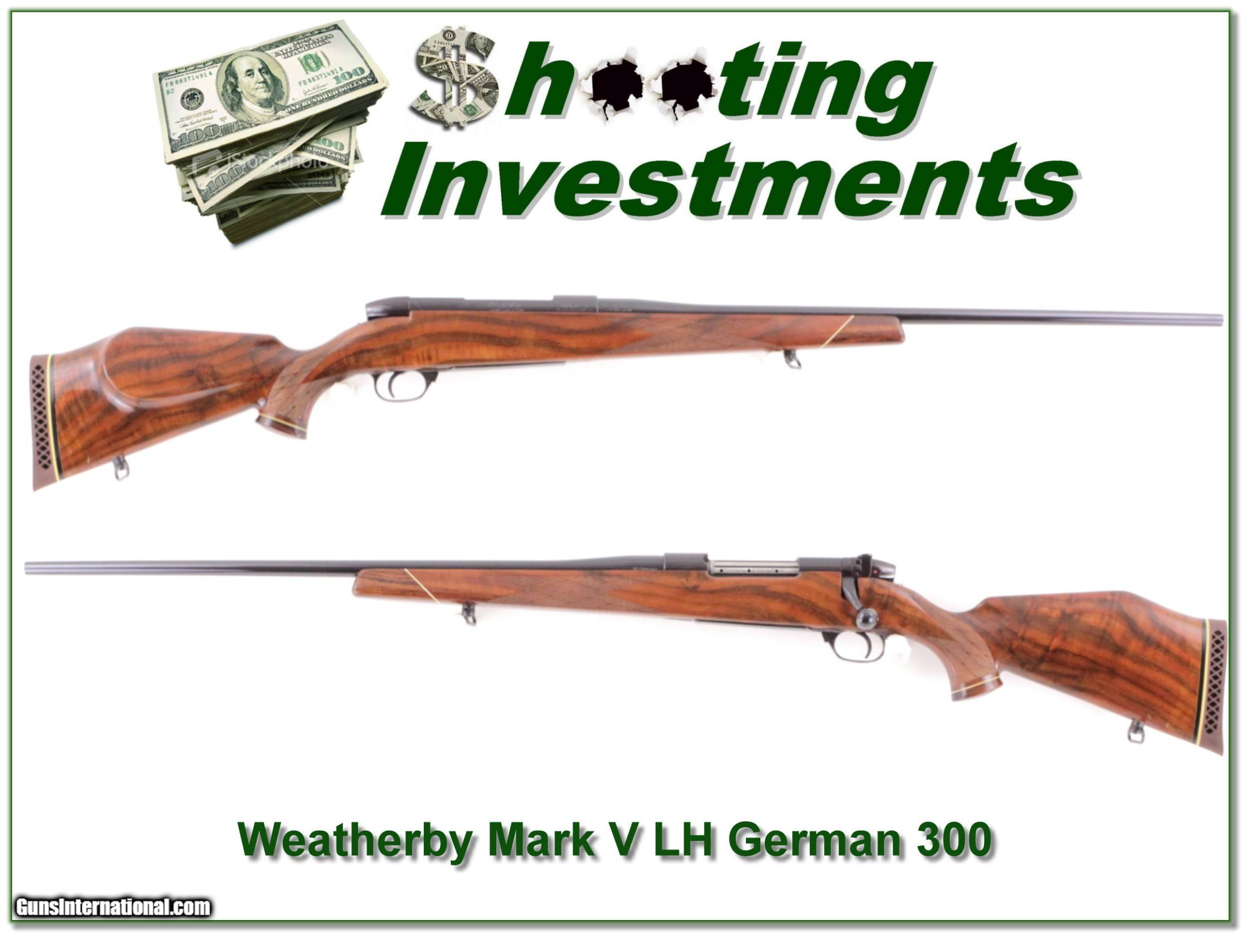 Description: Collectors, hunters and shooters, this is an excellent condition Left Handed German made Weatherby Mark V. It is in excellent condition and MUCH nicer wood than most. It has a 24in lighter weigh barrel and will make a classic hunting gun for the Let Handed shooter or fine addition to your collection. Shipping with insurance is $39. Please email me with any questions or larger pictures. (Consign your quality firearms with Shooting Investments for only 12%! Let me know if you have any you would like to sell!) 18-1134 Payment: Payment is by Money Order, Cashiers Check or Personal Check. I can now also accept MasterCard and Visa with a 3% convenience fee. PayPal can be used for some items but never firearms. Please let us know if you would like to pay via PayPal. Shipping: The shipping charge will be listed in each description. It is $39 for most firearms. Some heavy guns or those insured for over $2000 will be higher. Shipments to Alaska and Hawaii are higher because air shipment is required. Most firearms are shipped on Tuesday and Thursday and usually in 5 days of receipt of payment. We package all shipments carefully and insure them. Optics are shipped Priority Mail and most other non-firearm shipments are shipped First Class. Returns: Our return policy is simple. If for any reason you are not pleased with your purchase, you may return your item for a full refund of purchase price. Ammunition cannot be returned. It is important to us that you are happy. Guns cannot be fired or dissembled before returning them and they must be returned in the same condition as received. Notification of a return must occur with-in 3 days of receipt at your dealer. Shipping, convenience and dealer fees are not refundable and are the responsibility of the buyer. Lay-a-way: If needed, we offer a 60 day lay-a-way option on most firearms. It is 1/3 now, 1/3 in 30 days and 1/3 in 60 days. Lay-a-way firearm sales are final and if not completed the first payment cannot be returned. Consigning your firearms with Shooting Investments: We will help you get top dollar for your firearms. While most local guns shops charge 20% or more, our fee is only 12% with a minimum of $75. At your local gun shop it might take months to sell. Selling on-line provides instant access to thousands of interested buyers. You won’t find any other on-line dealer willing to sell your firearms for only 12% or listing every gun on 3 separate s. Selling through an House typically costs the seller 15% and the buyer an addition 15% (so 30%) and you have to wait several months to sell and longer to receive funds. If properly priced, we will sell your firearms in a few weeks. Send us an email or give us a call and we’ll explain how easy it is for you to get top dollar. Trading: Trading for use is really just buying your gun to re-sell. If you have a gun you want to trade, please email a picture and we will let you know what we can give or it. You will always get more if we sell it for you on consignment. Help for California Buyers: We are happy to ship to California. It is the buyer’s responsibility to make sure any item you buy is legal in your state. We are also happy to help with your purchase of a firearm from someone other than us. If you see a gun you would like to buy but the seller can’t or won’t ship to California they can ship to use and we’ll then ship it to your California dealer. The cost for this service is only $30 + shipping. Let us know if we can help! SOLD |