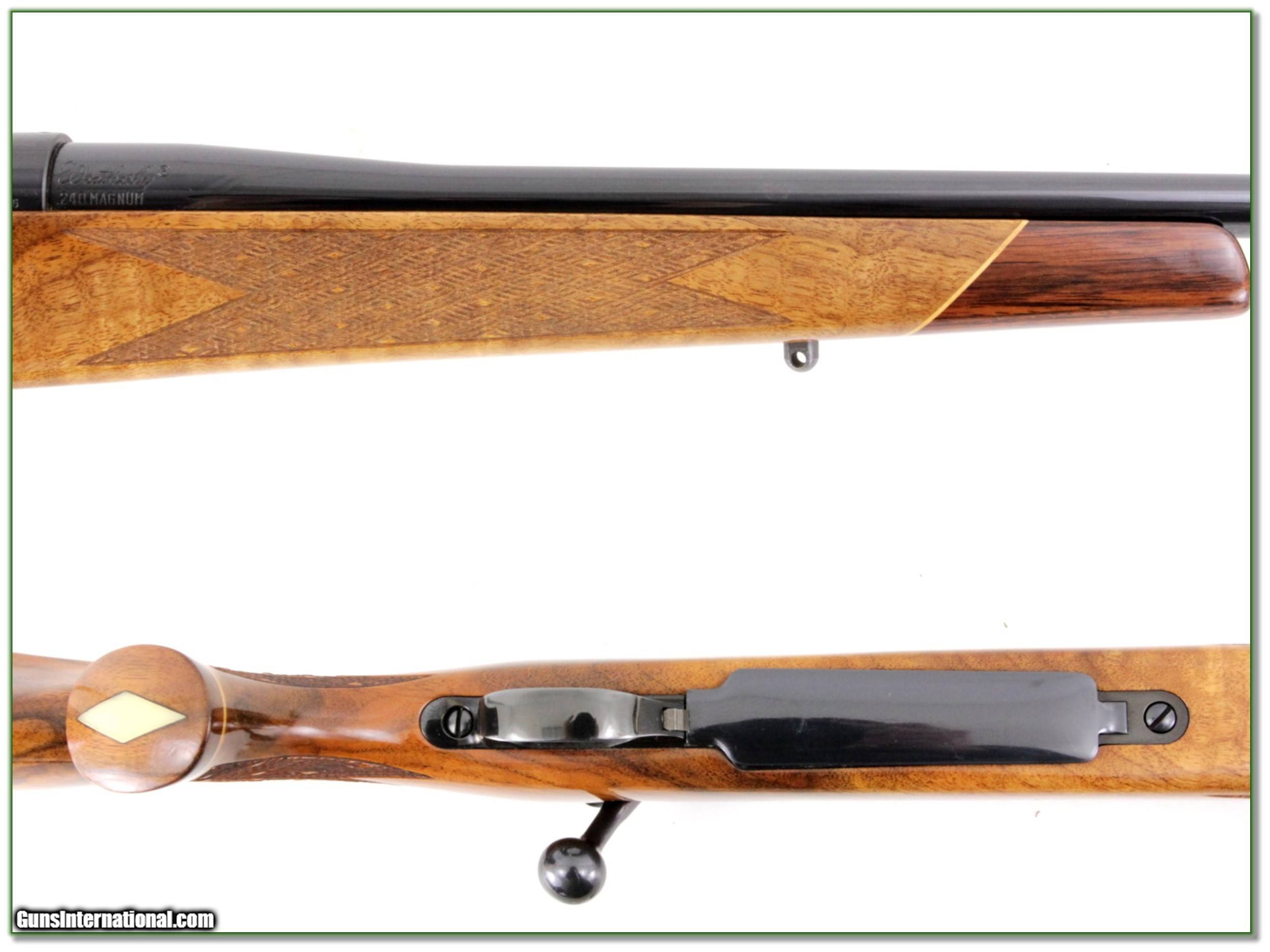 Description: This is a beautiful 9-lug Left Handed Weatherby Mark V Deluxe in the hard to find 240 Weatherby Magnum. Look at the wood! You will look a long time to find nicer. This is a Japan made Mark V with 24in barrel. The blue is excellent, and the wood has only a few minor marks. It will make a classic high-end hunting gun for the Left-Handed shooter or be a fine addition to your collection. Shipping with insurance is $39. Please email me with any questions or larger pictures. (Consign your quality firearms with Shooting Investments for only 12%! Let me know if you have any you would like to sell!) 19-0204 Payment: Payment is by Money Order, Cashiers Check or Personal Check. I can now also accept Credit Cards (MasterCard, Visa, Discover & American Express) with a 3% convenience fee. PayPal can be used for some items but never for firearms. Shipping: The shipping charge will be listed in each description. It is $39 for most firearms. Some heavy guns or those insured for over $2000 will be higher. Shipments to Alaska and Hawaii are higher because air shipment is required. Most firearms are shipped on Tuesday and Thursday and usually in 5 days of receipt of payment. We package all shipments carefully and insure them. Optics are shipped Priority Mail and most other non-firearm shipments are shipped First Class. Returns: Our return policy is simple. If for any reason you are not pleased with your purchase, you may return your item for a full refund of purchase price. Ammunition cannot be returned. It is important to us that you are happy. Guns cannot be fired or dissembled before returning them and they must be returned in the same condition as received. Notification of a return must occur with-in 3 days of receipt at your dealer. Shipping, convenience and dealer fees are not refundable and are the responsibility of the buyer. Lay-a-way: If needed, we offer a 60 day lay-a-way option on most firearms. It is 1/3 now, 1/3 in 30 days and 1/3 in 60 days. Lay-a-way firearm sales are final and if not completed the first payment cannot be returned. Consigning your firearms with Shooting Investments: We will help you get top dollar for your firearms. While most local guns shops charge 20% or more, our fee is only 12% with a minimum of $75. At your local gun shop it might take months to sell. Selling on-line provides instant access to thousands of interested buyers. You won’t find any other on-line dealer willing to sell your firearms for only 12% or listing every gun on 3 separate s. Selling through an House typically costs the seller 15% and the buyer an addition 15% (so 30%) and you have to wait several months to sell and longer to receive funds. If properly priced, we will sell your firearms in a few weeks. Send us an email or give us a call and we’ll explain how easy it is for you to get top dollar. Trading: Trading for use is really just buying your gun to re-sell. If you have a gun you want to trade, please email a picture and we will let you know what we can give or it. You will always get more if we sell it for you on consignment. Help for California Buyers: We are happy to ship to California. It is the buyer’s responsibility to make sure any item you buy is legal in your state. We are also happy to help with your purchase of a firearm from someone other than us. If you see a gun you would like to buy but the seller can’t or won’t ship to California they can ship to use and we’ll then ship it to your California dealer. The cost for this service is only $30 + shipping. Let us know if we can help! SOLD |