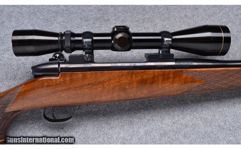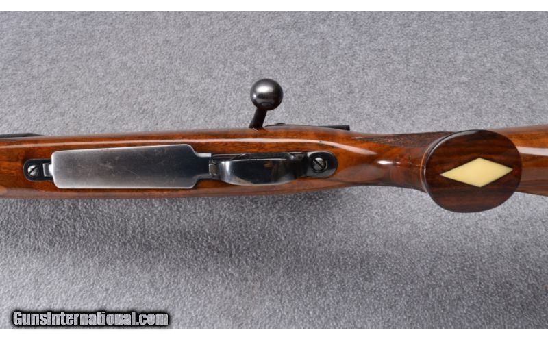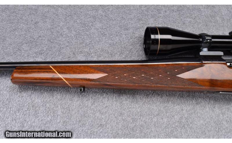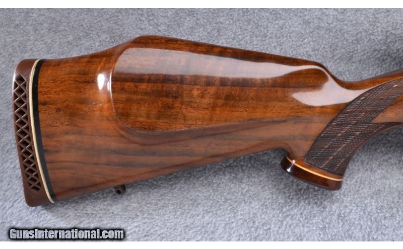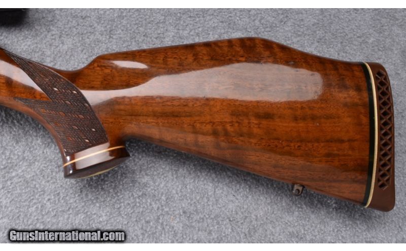 Description: Bolt knob and floorplate show carry wear. Barrel blue has a couple scuffs towards the muzzle. Crack behind bolt on left side of stock. Remainder of stock remains free of cracks showing a few light use marks. Complete with Leupold 3x-9x optic. Japan manufactured. No box. SOLD Manufacturer: S/N H93XXX Caliber Info: .300 Wby. Mag. Metal Condition: Good Wood Condition: Very Good Bore Condition: Excellent Barrels: 24 Triggers: Factory Stock: Checkered Walnut Pistol Grip with Contrasting Cap Stock Dimensions: 13 1/4" LOP Fore End: Checkered Walnut with Contrasting Cap Butt Pad: Brown Vented Rubber Weight: 9 LB Sights: Leupold 3x-9x Optic Item Location: Wheeling, WV |