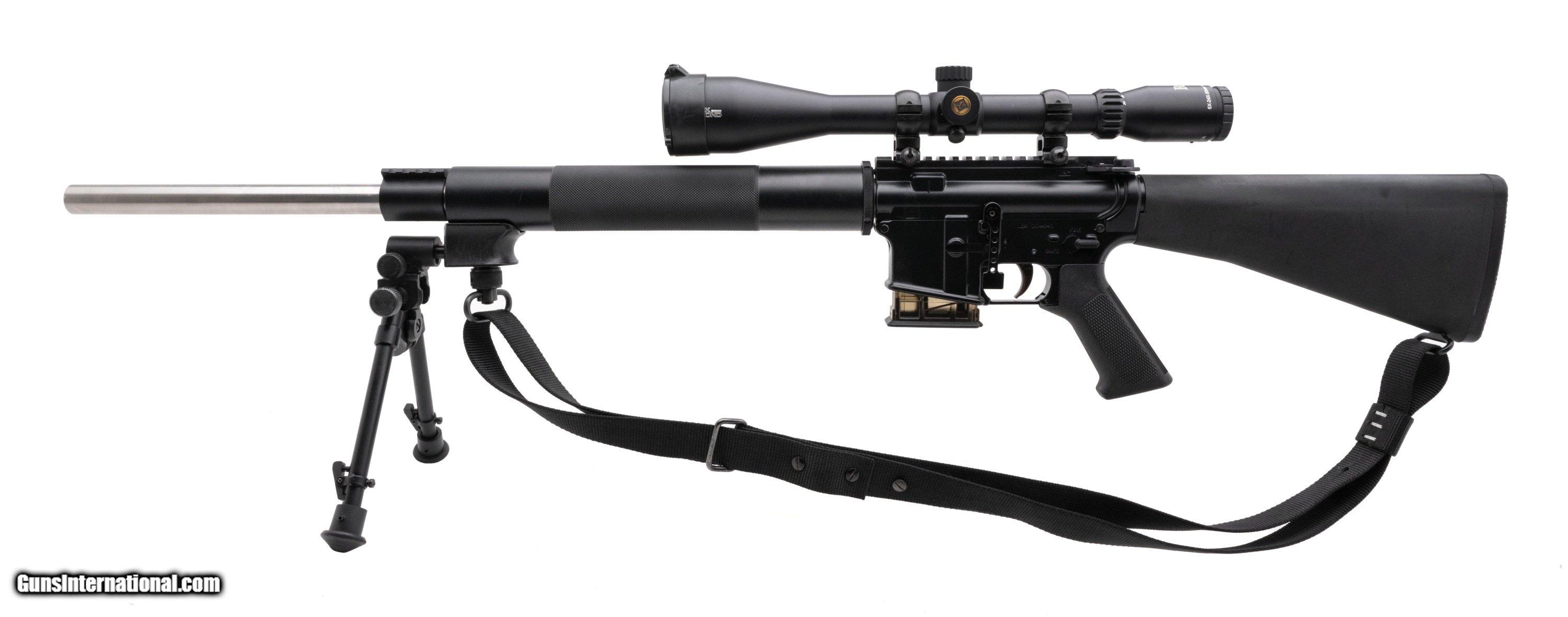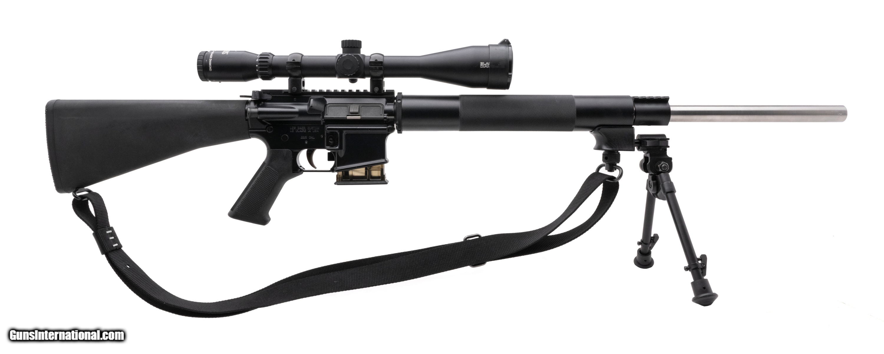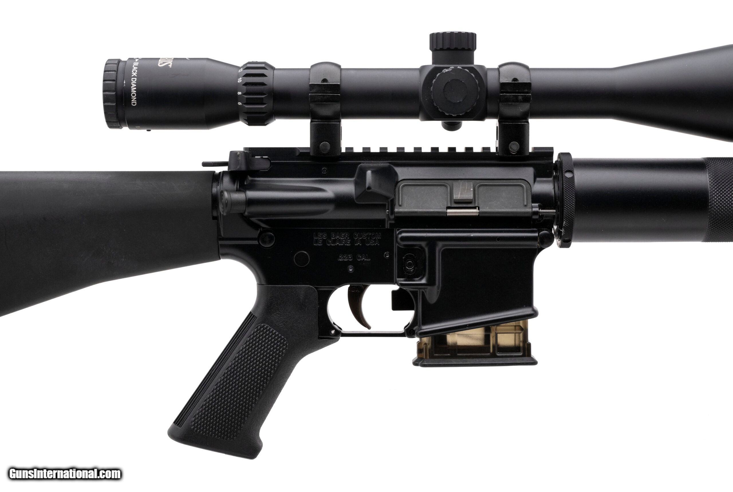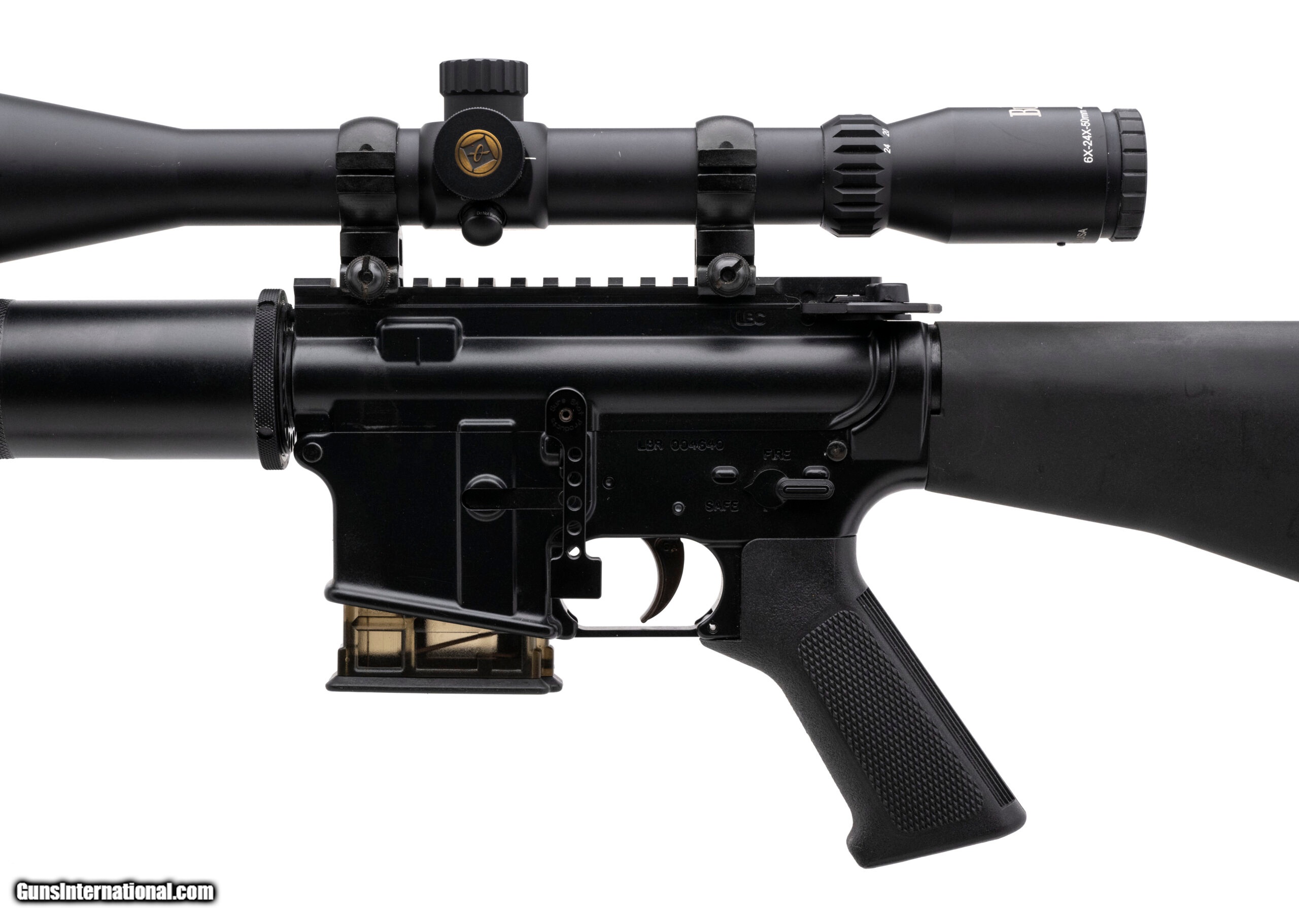 Description: "SN: LBR004640. Modern production .223 Remington with an 24"" Heavy Barrel. Bores is bright with excellent rifling. Semi-Auto Rifle with a Burris 6-24x50 Scope, Jewell 2 Stage Trigger Group and Versa Pod Bipod. Finish is in excellent condition. Synthetic A2 style stock and pistol grip are in excellent condition. Overall condition is excellent, Comes with sling. SOLD |