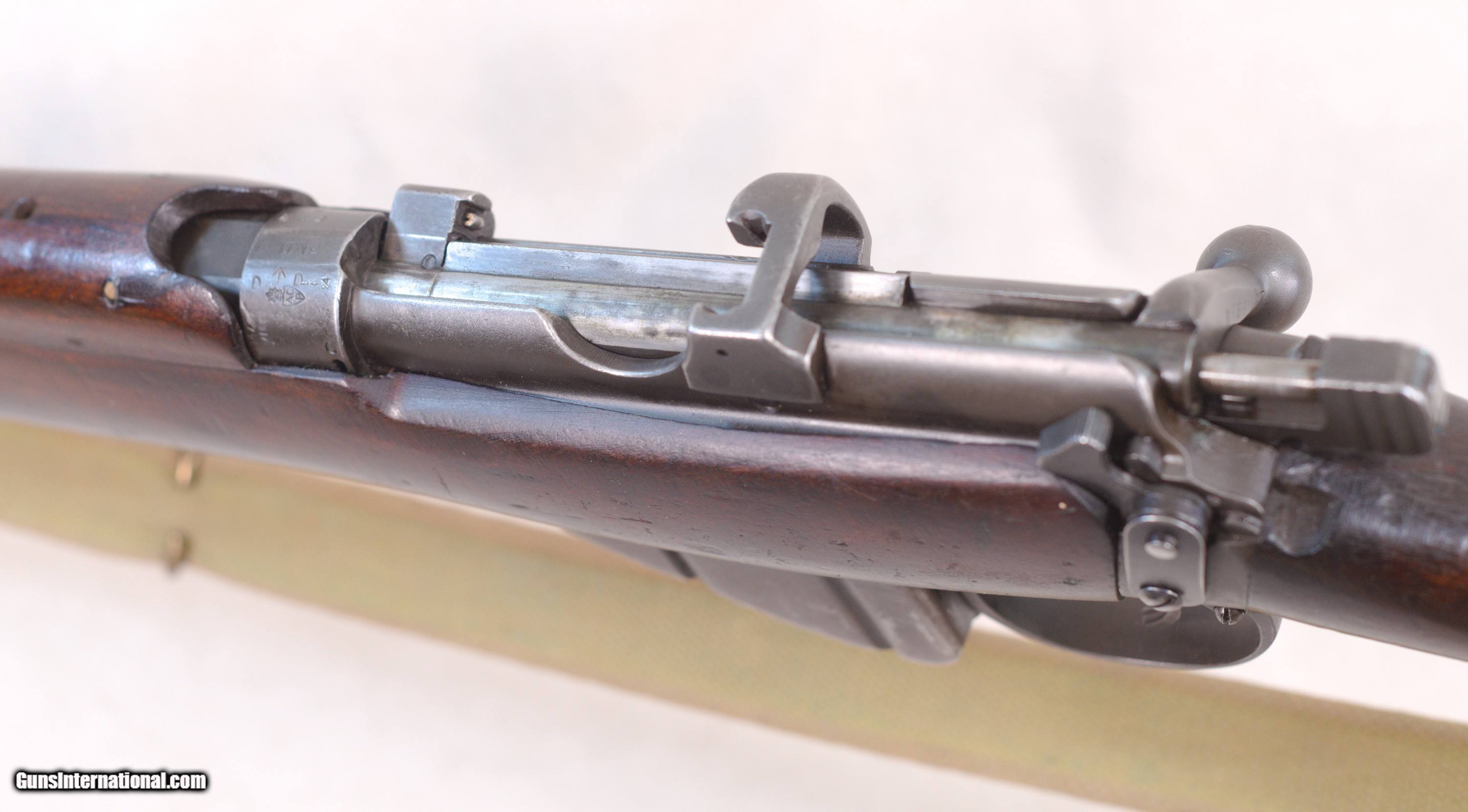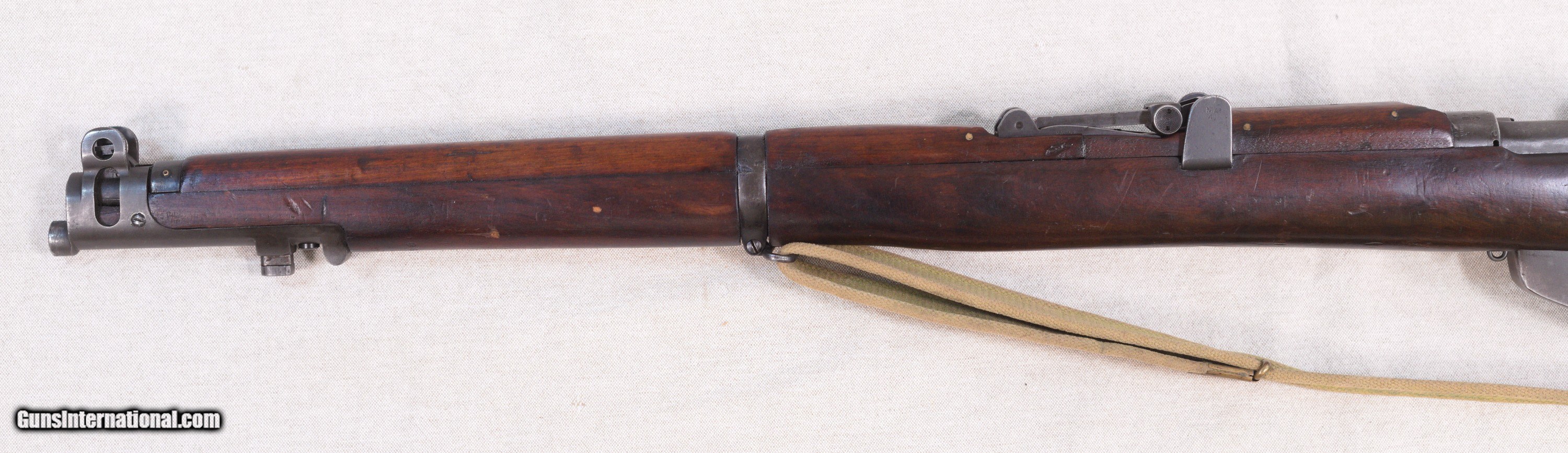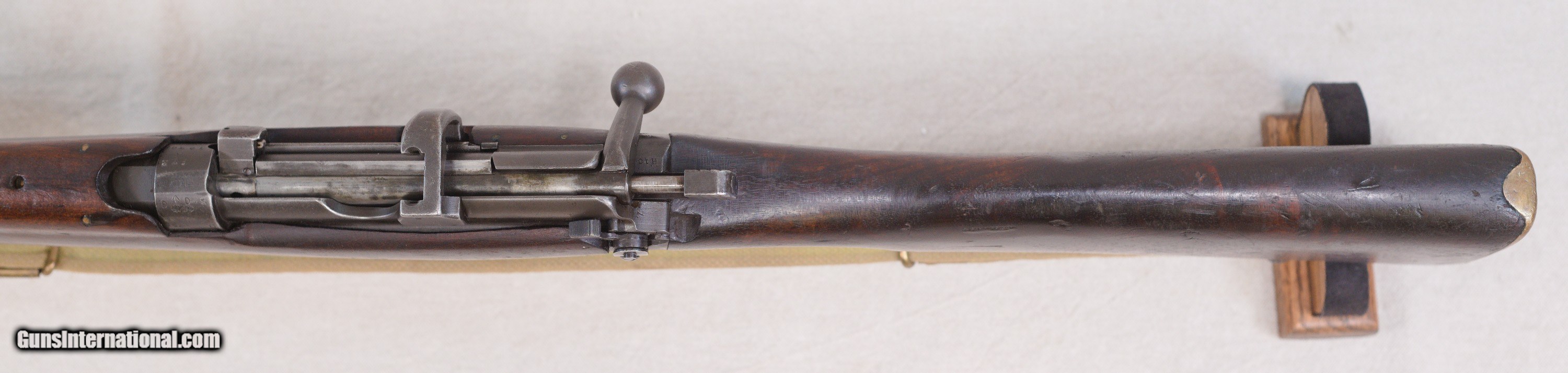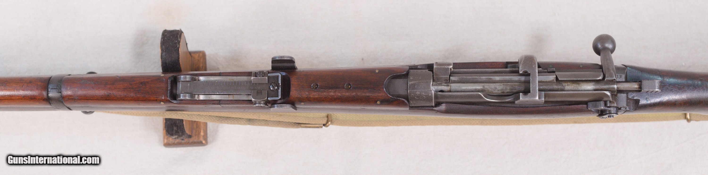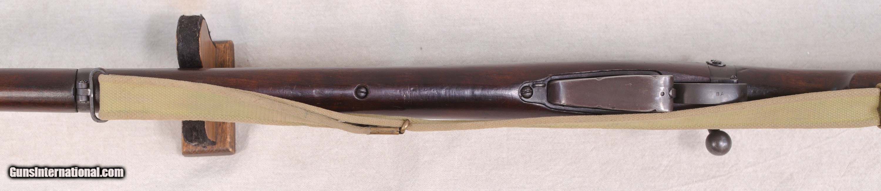 Description: Presented is an Australian made Lithgow SMLE/SHT LE bolt action rifle chambered in .303 British caliber. The Lee–Enfield or Enfield is a bolt-action, magazine-fed repeating rifle that served as the main firearm of the military forces of the British Empire and Commonwealth during the first half of the 20th century, and was the British Army's standard rifle from its official adoption in 1895 until 1957. The WWI versions are often referred to as the "SMLE", which is short for the common "Short, Magazine, Lee–Enfield" variant. A shorter and lighter version of the original MLE—the Rifle, Short, Magazine, Lee–Enfield or SMLE (sometimes spoken as "Smelly," rather than "S-M-L-E")—was introduced on 1 January 1904. The barrel was now halfway in length between the original long rifle and the carbine, at 25.2 inches (640 mm). The SMLE's visual trademark was its blunt nose, with only the bayonet boss protruding a small fraction of an inch beyond the nosecap, being modelled on the Swedish Model 1894 cavalry carbine. This particular example is in very good servicable condition with wear that would be sexpected for a service rifle made in 1918....towards the end of WW1. There are some dinks in the wood and some high edge and muzzle wear but nothing serious. Protected front sight and adjustable rear. The barrel has a good bore and strong rifling. This fine Aussie rifle would make a great addition to a collection of militaria. PRICE: $695.00 We are Antique & Modern Firearms in Lexington, KY, a dealer of fine firearms since 1974. To Inquire please call 859-276-1419 We Buy, Sell and Trade Firearms & Knives. Do you have a Individual Firearm, Firearms Collection, or Firearms Estate to sell? Give us a call or send an email, and we can talk about buying the item(s) outright, or selling them on consignment for you. NOTE: No additional fee for a Credit Card payment SOLD Rifle Caliber: .303 British Manufacturer: Lithgow Model: SMLE SHL TE/No.1 Mk3 Serial Number: A12398 Barrel Length: 25.2 Condition: Good Metal Condition: Good Wood Condition: Good Bore Condition: Good with good rifling Action: Bolt Action Manufacture Date: 1918 |