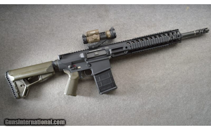Description: LMT LM308MWS chambered in 7.62 NATO. The rifle features a one-piece, monolithic block, upper receiver, with a free floating barrel and a full length Picatinny rail on top of the receiver. It has standard receiver markings with ambidextrous safety and magazine release. The upper receiver is fitted with a Vortex strike fire optical sight, that is mounted in a Vortex scope mount. The adjustable stock is a Magpul ACS with storage and a QD mount. The Pistol grip is a Magpul MIAD with storage and a removable front and back strap (no extra straps). It is complete with 9 MAGPUL, 20 round magazines (total), a blacksling, original flash hider, iM3300 Pelican Storm hard case in grey. Excellent overall, with 95% original finish, minor handling wear. .308 Winchester SOLD Chambers: 20+1 semi auto. Metal Condition: Minor Usage wear. Bore Condition: Bright strong bore. Barrels: 16" barrel. Stock Dimensions: Adjustable. Fore End: Accessory rail. Butt Pad: Rubber. Weight: 11.5 lbs Sights: Red dot. Item Location: Owatonna, MN |