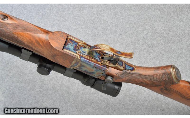 Description: Luxus Arms Model 11 chambered in 25-06 Remington. Single shot sporting rifle features a trigger guard activated break action design with side-mounted hammer cocking lever. Case-hardened receiver and furniture with leaf and vine border engraving, 26 Inch tapered barrel in satin blue finish. Finely checkered capped pistol grip stock of high grade walnut. .25-06 Remington SOLD Metal Condition: Excellent Wood Condition: Excellent Bore Condition: Bright Sharp Barrels: 26 " Tapered Fore End: Checkered Walnut Butt Pad: Pachmayr Weight: 8 lb. 1 oz. Sights: Leupold VX-III 4.5-14x40mm Item Location: Buda, TX |