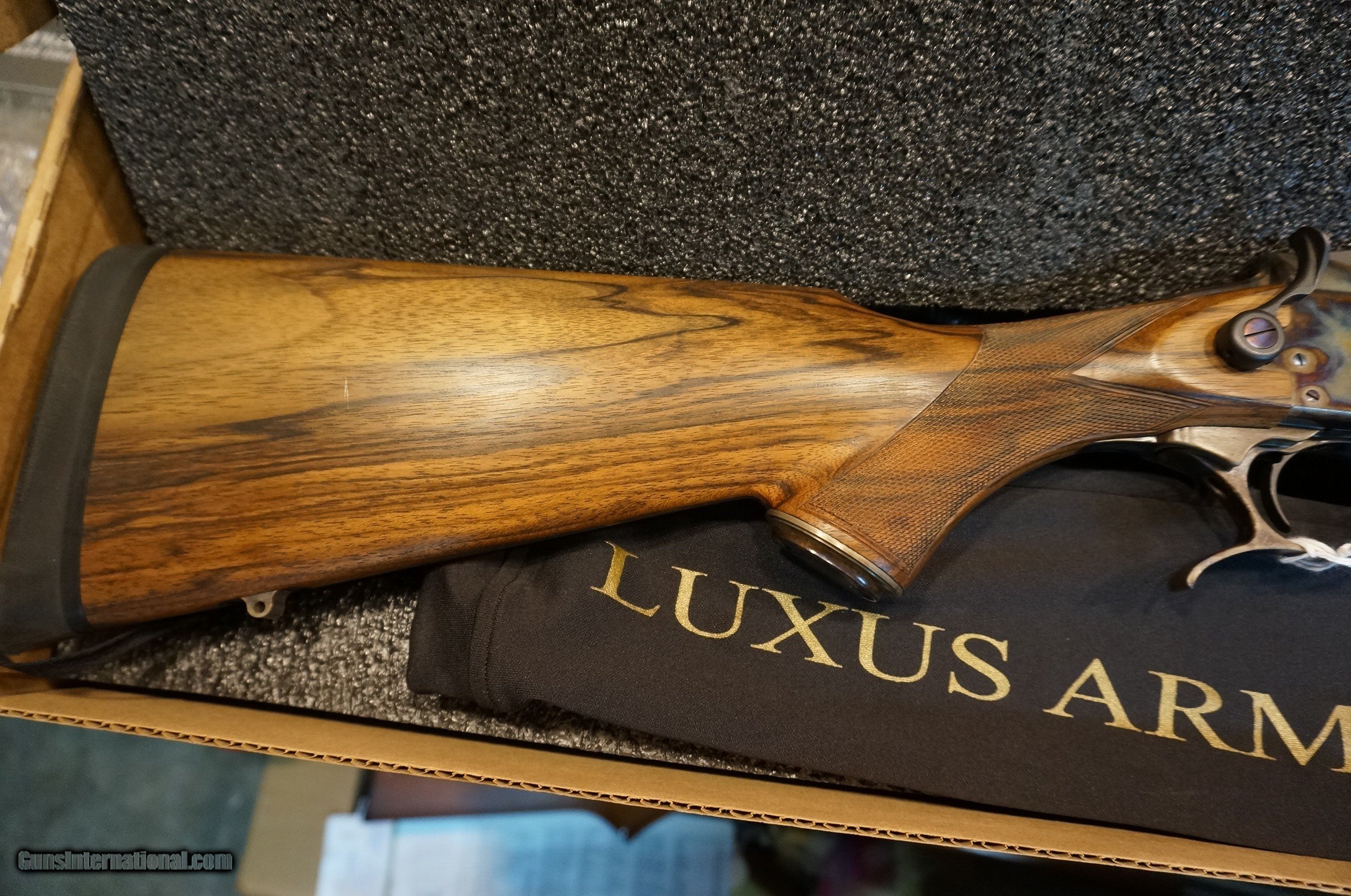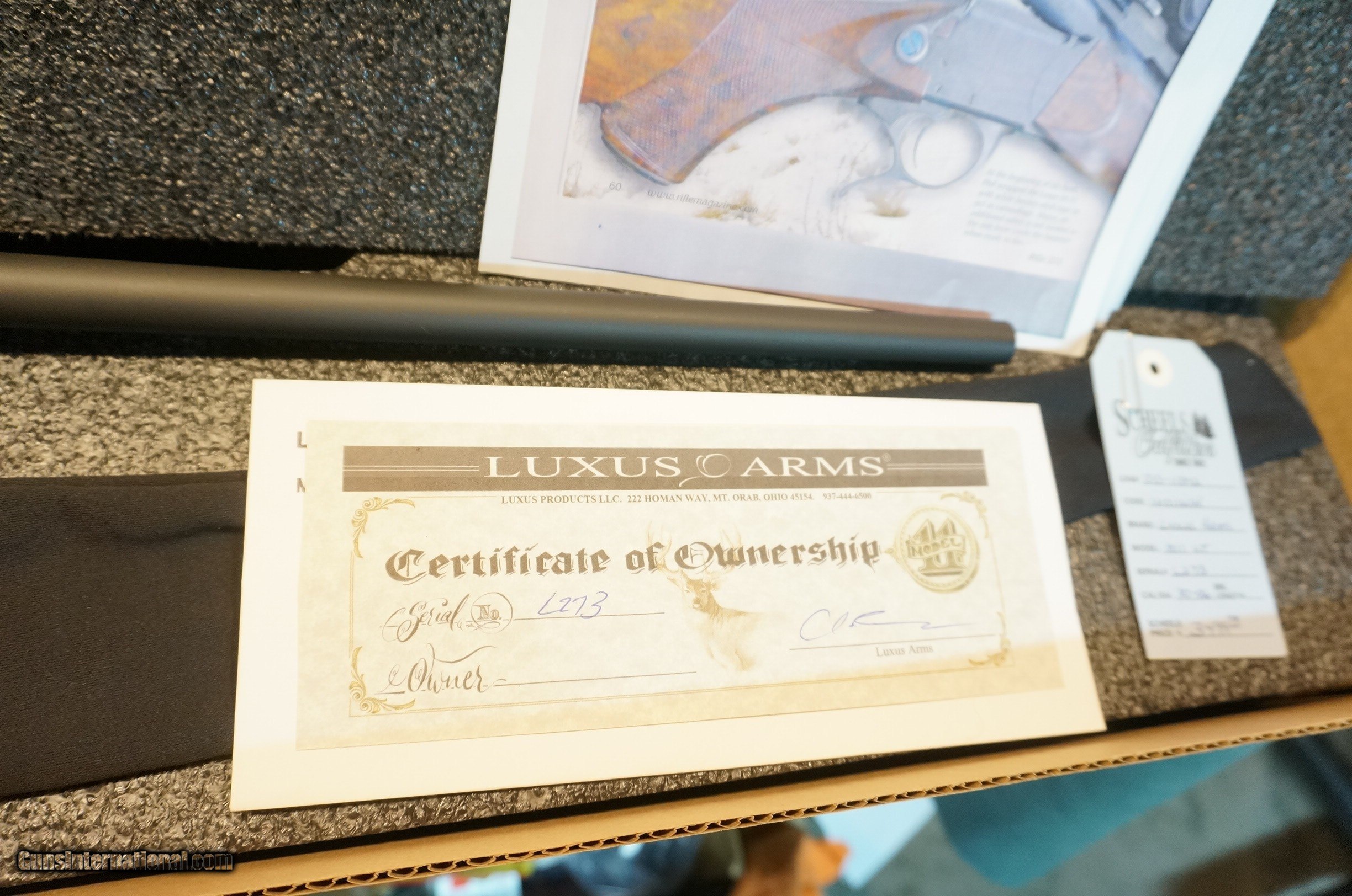 Description: Luxus Arms Model 11 30-06 26" barrel,casecolored receiver,grip cap,and inletted rear sling swivel,beautiful Turkish Walnut stock,ANIB with papers,probably unfired. GUN COLLECTIONS WANTED FOR CASH! We buy, sell, consign and trade new and used firearms.We will pay finders fees and travel for large collections. This is our 46th year in business. We offer 90 day layaways with 20% down. No return on layaways. Firearms will need to be transferred through a FFL dealer. Prices reflect a cash discount. There will be 3% added to credit card sales. We trade for gold and silver. THANK YOU! SOLD |