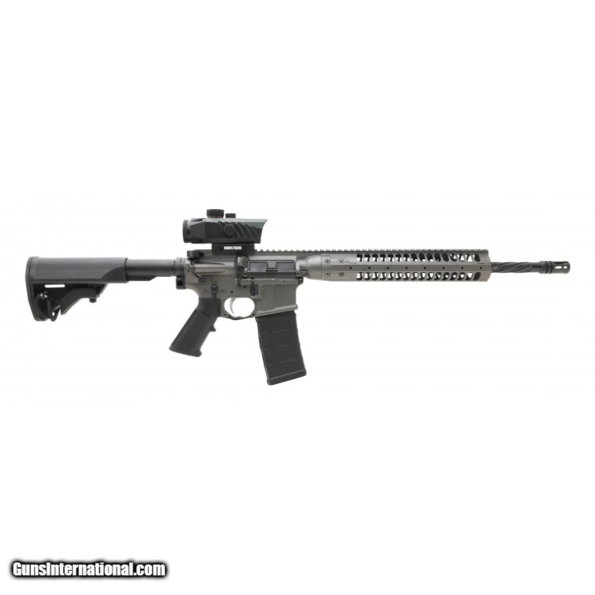 Description: " 16"" Spiral fluted gas piston SPR upper on a ambidextrous M6IC lower with compact stock and polished and coated trigger group. Comes with a Graphite Cerakote finish and Monstrum optic Overall excellent condition. SOLD |