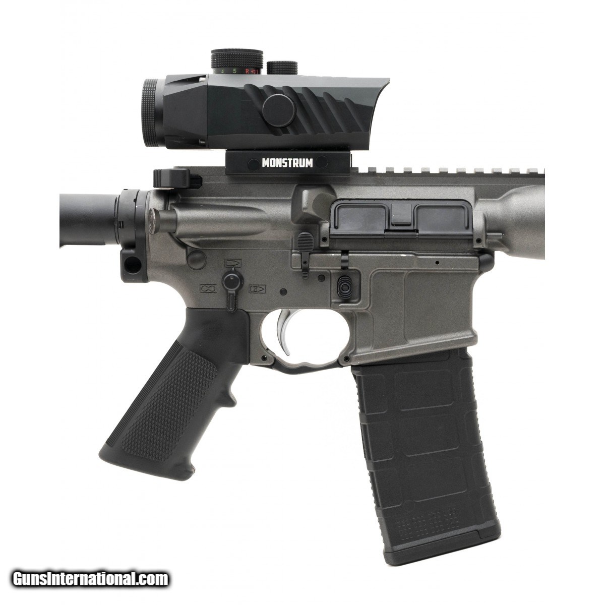 16"" Spiral fluted gas piston SPR upper on a ambidextrous M6IC lower with compact stock and polished and coated trigger group. Comes with a Graphite Cerakote finish and Monstrum optic Overall excellent condition.