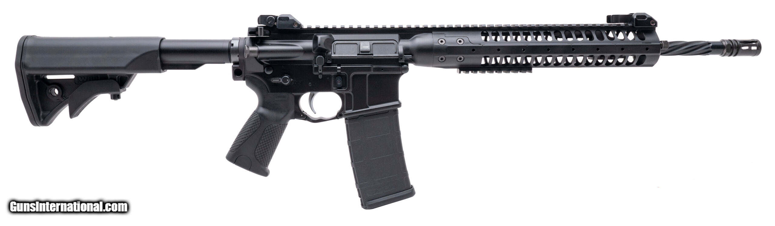 Description: "SN: 24-89909. Modern production 5.56mm NATO with a 16"" 399.95X WERKS spiral fluted barrel. Bore is bright with excellent rifling. Semi auto short stroke piston operated rifle. Finish is in excellent condition with very light handling wear. Synthetic stock is in excellent condition. Overall condition is excellent. SOLD |