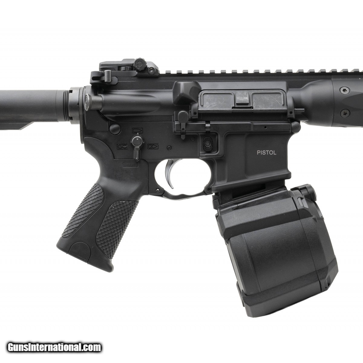 SN:24-88350. Semi-automatic direct impingement tactical pistol with a 10"" barrel, metal MBus Pro iron sights, ambidextrous lower, charging handle & SB Tactical brace. In excellent condition. Comes in a range case with a Magpul 60RD drum, 30RD standard magazine, & paperwork.