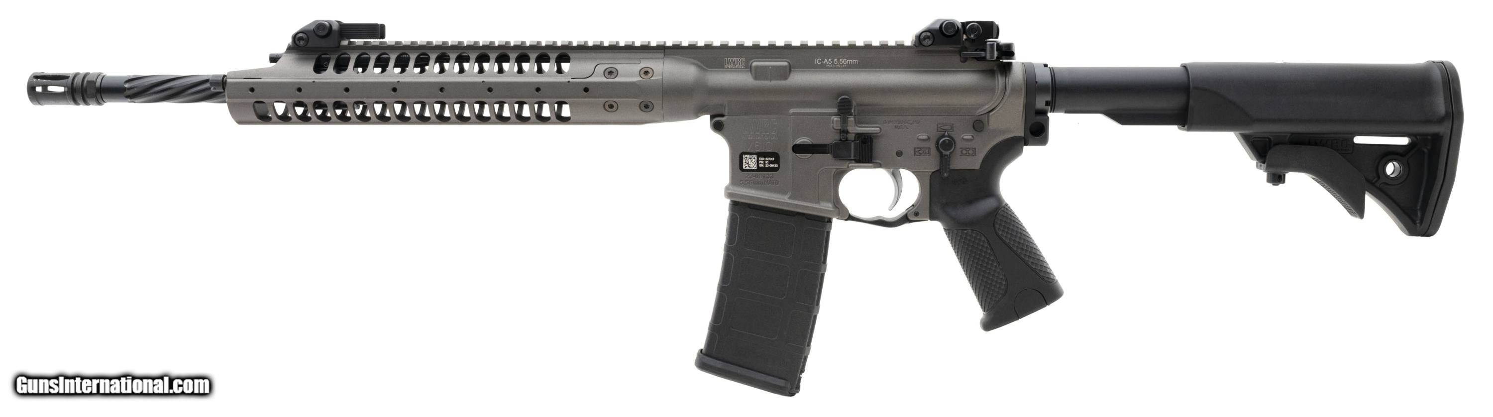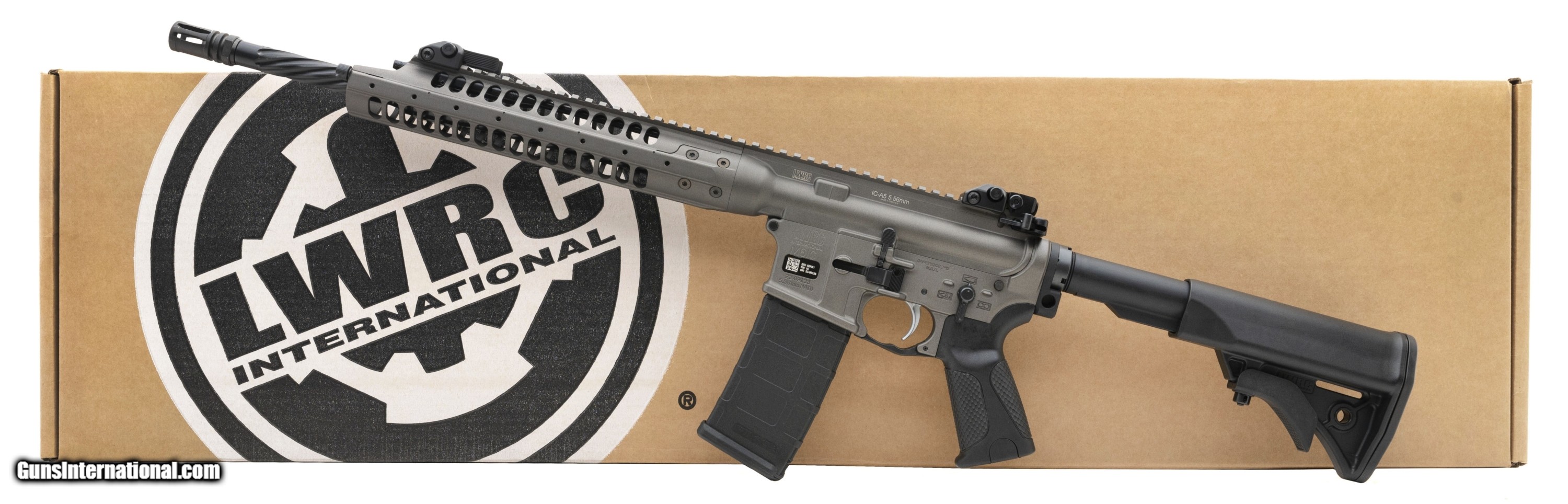 Description: "LWRC M6IC Semi-auto rifle. 5,56 Nato with a 16.1"" spiral fluted barrel, flip up iron sights. In a tungsten grey finish. NEW. UPC:856177006273. SOLD |