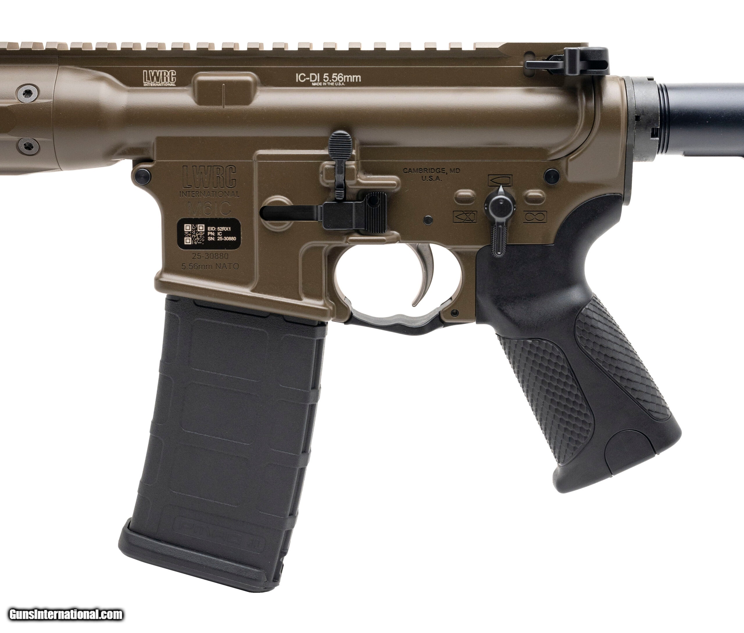 Description: "LWRCI M6IC Direct Impingement Rifle 5.56 NATO. 16.1"" Fluted Barrel with Flash Hider. Full Ambidextrous Action, Patriot Brown Cerakote Finish, and 4 Position Stock. Has a 1:7"" Right Hand Twist with 1/2x28"" Thread Pitch. NEW. UPC:852993007913 (STOCK PHOTO) SOLD |