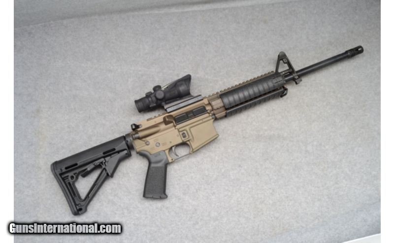 Description: Includes box and magazine. SOLD Caliber Info: 5.56 NATO Metal Condition: Excellent. Wood Condition: Excellent. Bore Condition: Shiny with good rifling. Barrels: 16" plus flash suppressor. Stock: Magpul adjustable black synthetic. Fore End: Quad rail. Butt Pad: Rubber pad. Weight: 8-lbs., 2-ozs. Sights: Trijicon ACOG sight, A2 style front post. Item Location: Fort Worth, TX |