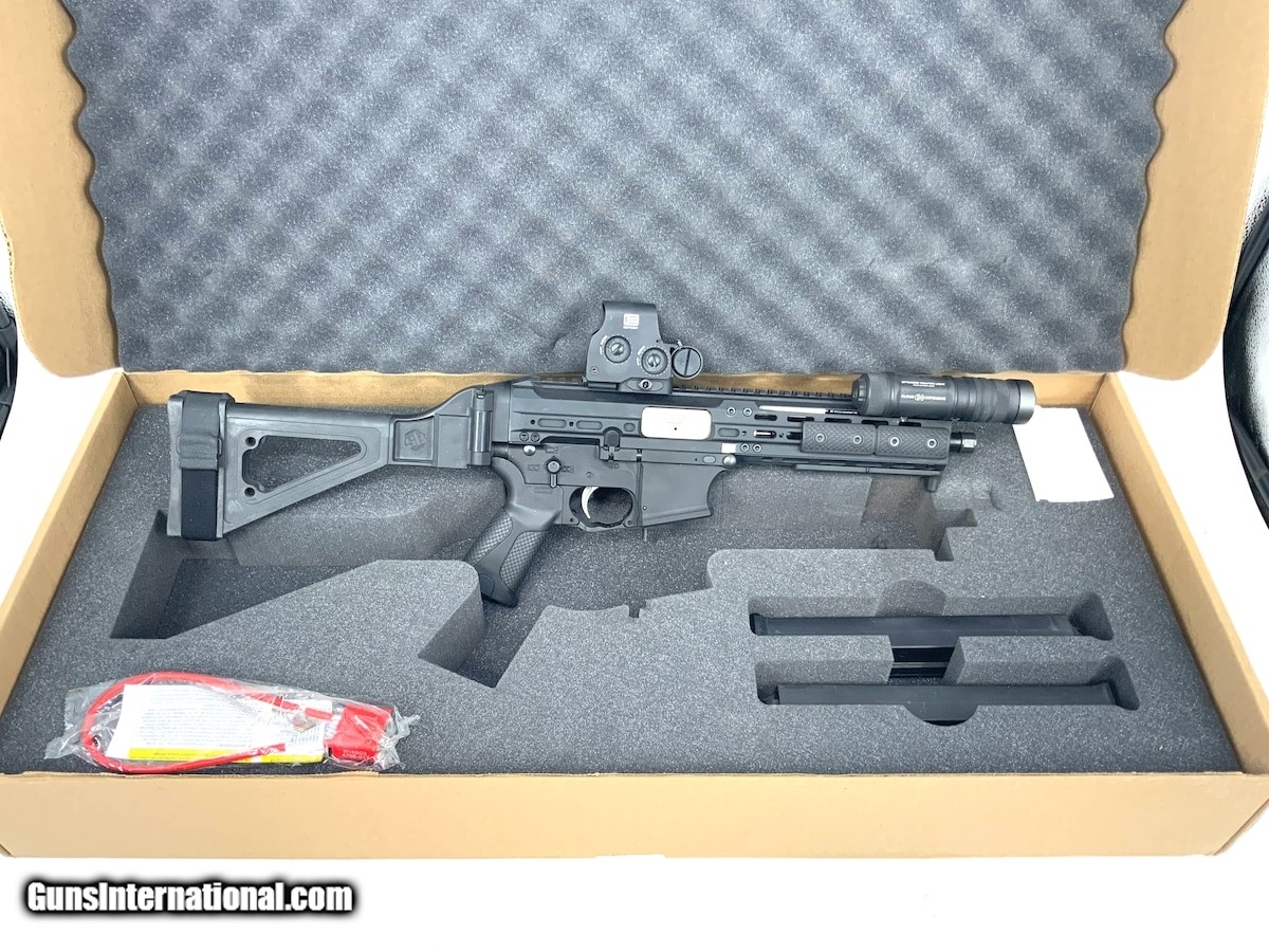 Description: Guns Listing ID: 470100 LWRC SMG-45 -Equipped with an EOTech red dot -Cloud Defense flashlight. - (2) 25 round magazines. -SB Tactical brace. CALIBER: .45 ACP BARREL: 8.5\"\" Cold Hammer Forged Chromoly Steel Barrel WEIGHT: 5.9 lbs LENGTH: 15.25-26\" MUZZLE THREADS: .578-28 RH RIFLING: 1:16 RH SOLD Manufacturer: LWRC Model: SMG-45 Caliber Info: 45ACP Condition: Used - Non-Certified Barrels: 8.5 BARREL Finish: BLUED |