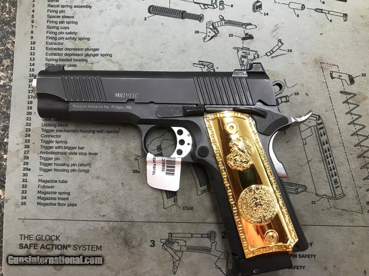 Description: Guns Listing ID: 879171 HAS GOLD GRIPS SOLD Manufacturer: MAGNUM RESEARCH Model: MR1911C Caliber Info: .45 ACP Condition: Used - Non-Certified Barrels: 4.3 BARREL Finish: MATTE BLACK |