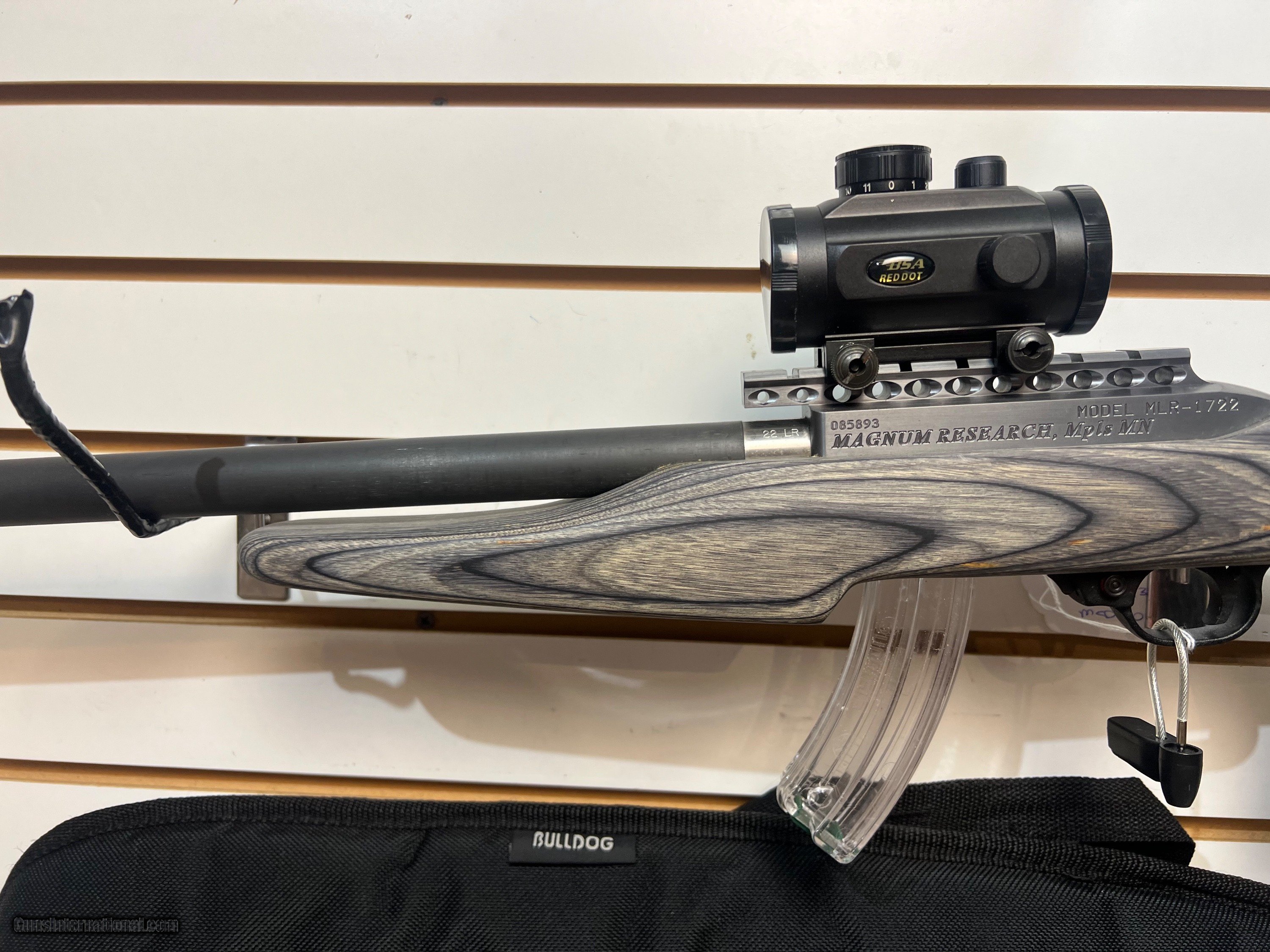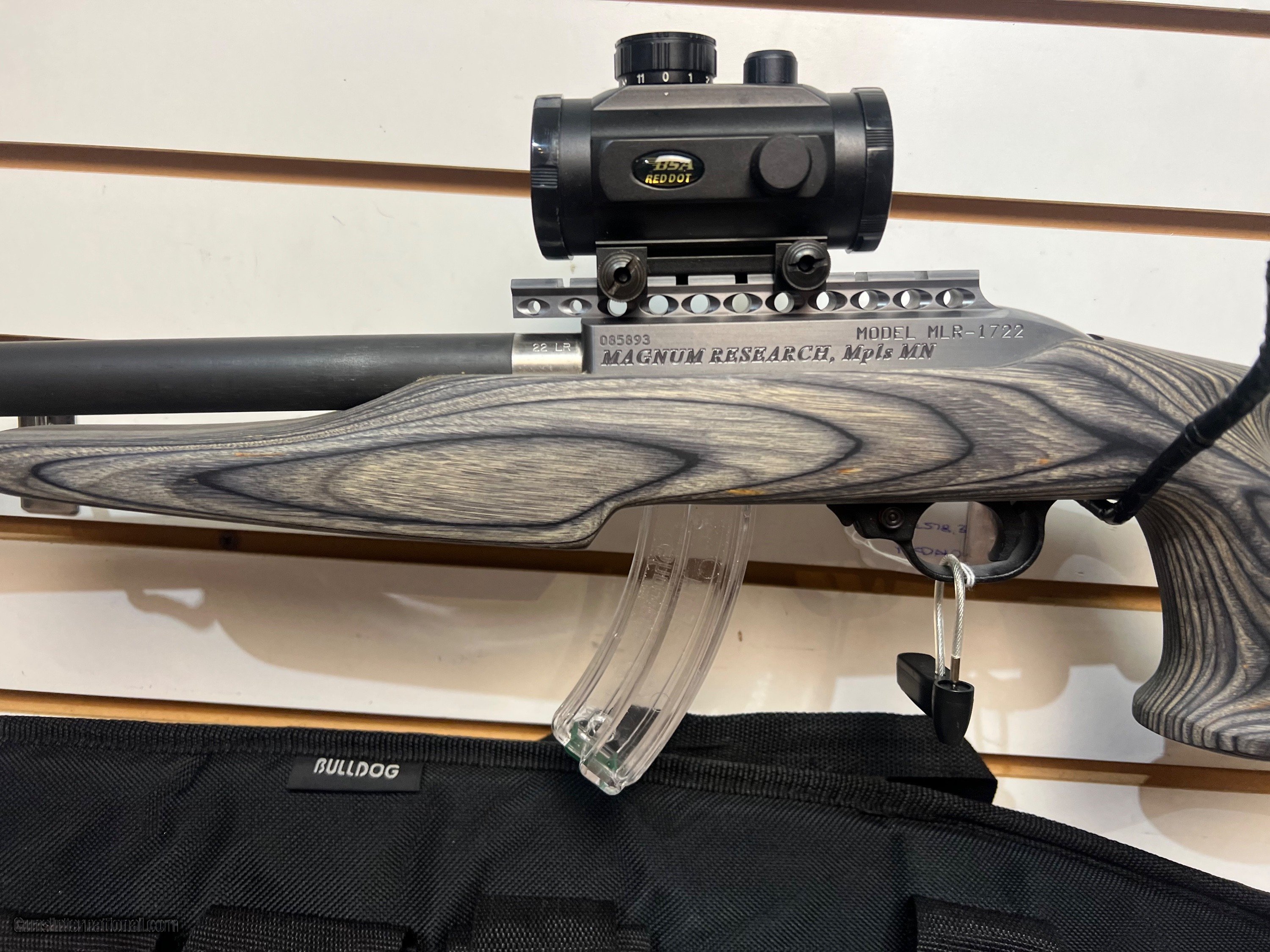 Used Magnum Research MLR 17-22 16" carbon fiber bbl thumbhole stock reddot 4 25rnd 2 10 rnd mags very good condition