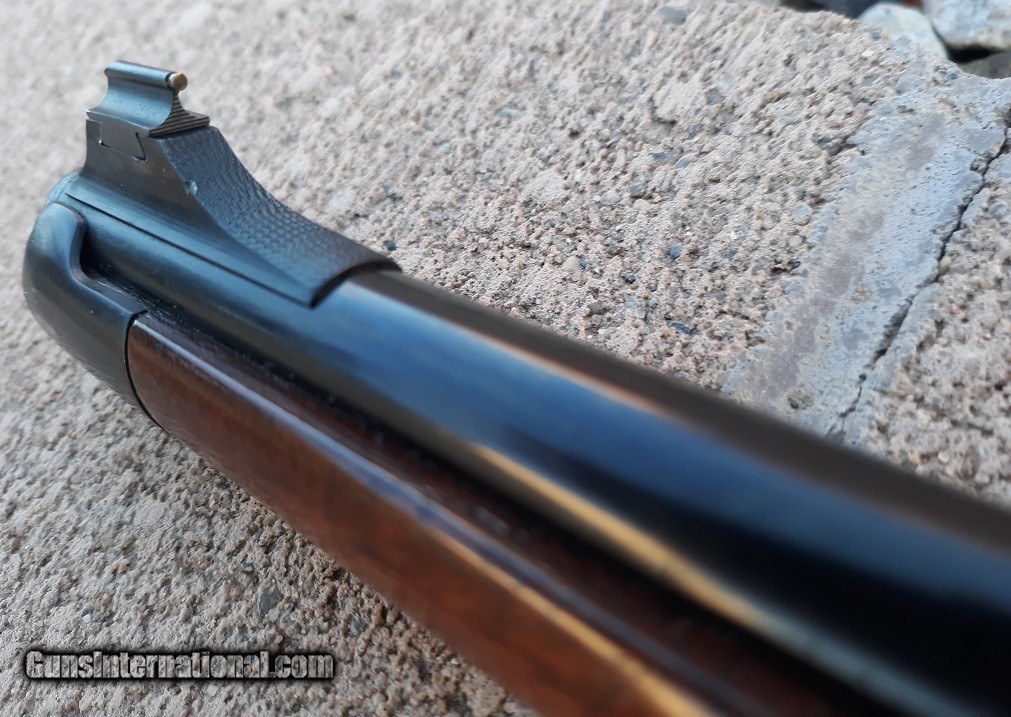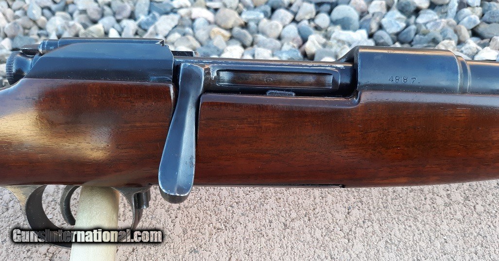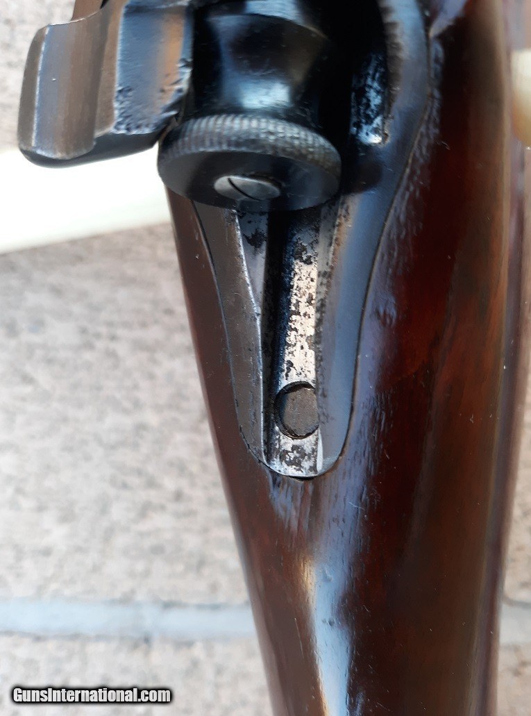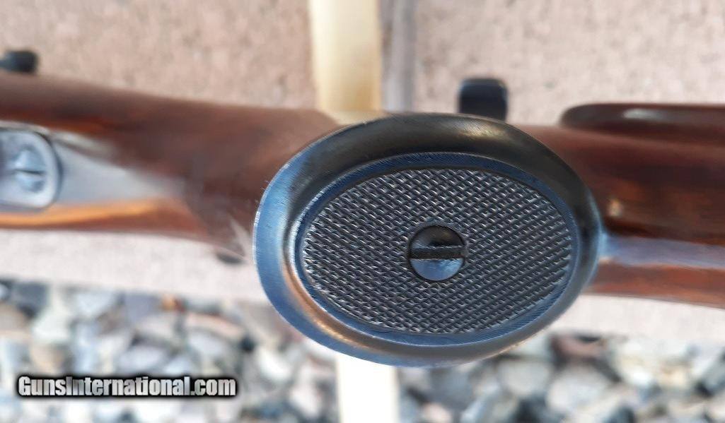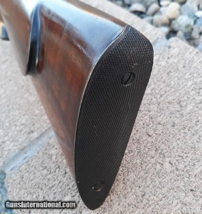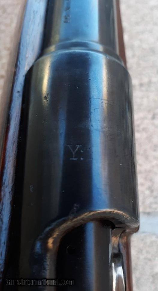Description: For sale, a beautiful Greek Mannlicher sporter conversion featuring Monte Carlo stock with cheekrest, original M/S buttplate and gripcap (both metal), spoonhandle bolt (blued) with interesting flare out on handle) and single trigger. Feeds, shoots and ejects perfectly. Original military action and magazine - rebarrelled to 7x57. Receiver rail reads "Mannlicher Schoenauer 1930 System." Receiver ring still has "Y 1903/14" very faintly present. Bore is excellent - shiny with strong rifling. 17" barrel. Excellent bluing throughout on all metal. Minor marring on the bluing on the left siderail. One small spot of bluing loss on the nosecap. Stock is excellent with no cracks or chips. Interior of receiver shows old pitting was present. It does not impact function. Unique trigger guard removal knob. Period Williams rear sight. SOLD Rifle Caliber: 7x57mm Mauser |