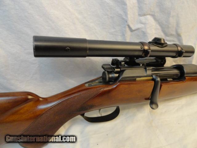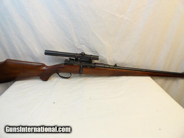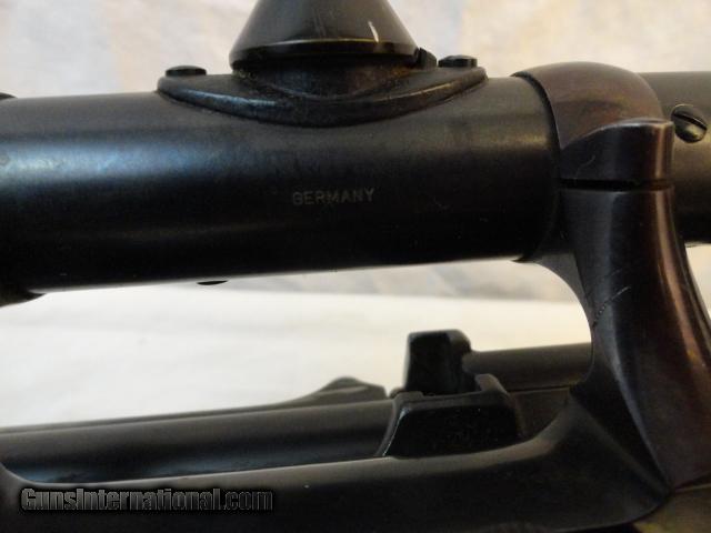 Seldom found in a very user buyer friendly caliber such as this 7x57 caliber. Beautiful little rifle with 20" barrel that retains literally all of the original factory blue finish. Two leaf folding rear sight and ramp front. Butter Knife bolt. Nice hand checkered stock with few hunting dings. Pre war Zeiss Zeiklein 2.25x scope made from 1935-40 with DRGM quick detachable mounts and a Lyman Receiver sight. Gun metal,scope and mount retain almost 98% of the factory original blue with only real wear on the trigger guard. Mint bore and action. Lovely little pre war 7mm rifle.