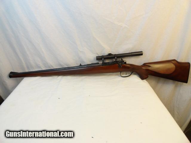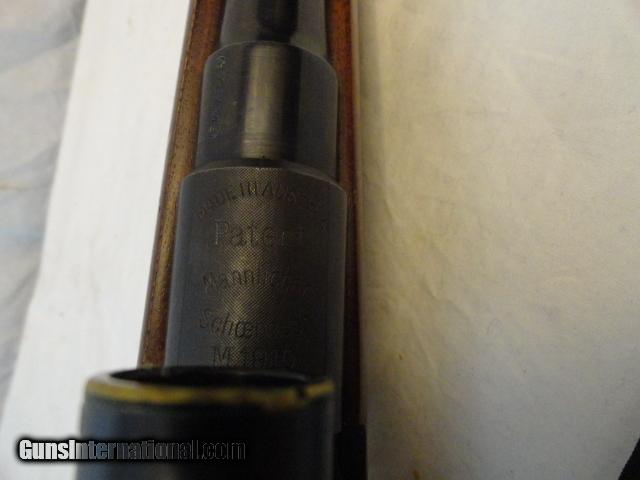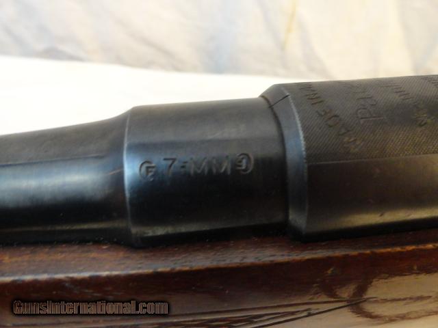 Description: Seldom found in a very user buyer friendly caliber such as this 7x57 caliber. Beautiful little rifle with 20" barrel that retains literally all of the original factory blue finish. Two leaf folding rear sight and ramp front. Butter Knife bolt. Nice hand checkered stock with few hunting dings. Pre war Zeiss Zeiklein 2.25x scope made from 1935-40 with DRGM quick detachable mounts and a Lyman Receiver sight. Gun metal,scope and mount retain almost 98% of the factory original blue with only real wear on the trigger guard. Mint bore and action. Lovely little pre war 7mm rifle. SOLD Curio/Relic: Yes Manufacturer: Mannlicher-Schoenauer Model: 1910 Serial Number: 4025 Caliber Info: 7mm Condition: extra fine Bore Condition: mint Barrels: 20 Manufacture Date: pre war |