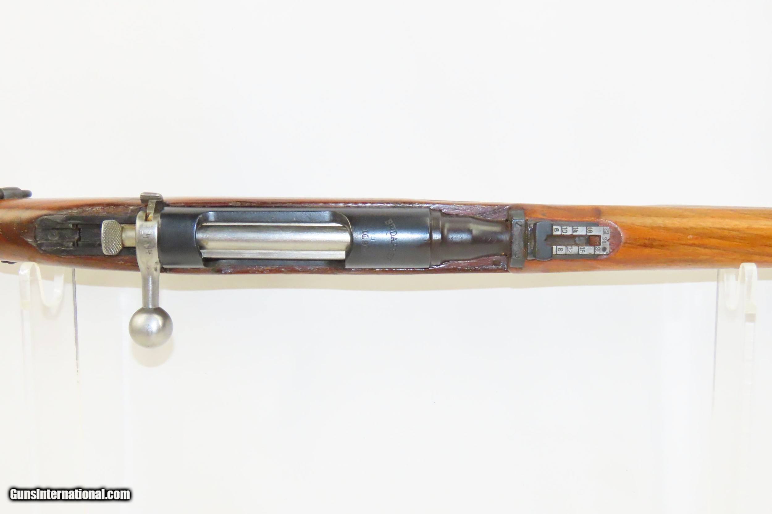 Description: HUNGARIAN FEGYVER Mannlicher M.95/30 STRAIGHT PULL 8x56mm C&R SHORT RIFLE WORLD WAR I & II Austro-Hungarian MILITARY RIFLE Here we present a C&R Hungarian Fegyver Arsenal Mannlicher Model 95/30 Straight Pull Bolt Action Short Rifle, made in the early 20th Century in Budapest, Hungary with a production run from 1897 through 1918. In 1930 the Austrian Army adopted a rimmed 8x56RSmm cartridge to replace the old Austro-Hungarian 8x50mm design. The new round, known as the M.30 in Austria, was initially used in modified Model 1890 and Model 1895-type Mannlichers, such as this example. These were essentially similar to the Austro-Hungarian patterns but were re-barreled or re-chambered for the 8x56RS (8x56RS = RandHulse and Spitzgeschoss) cartridge. This cartridge had a large-rim with a pointed bullet. To differentiate this new chambering from the older round-nose 8x50R chambering, the capital letter “S” was stamped on the barrel shanks of the converted weapon. The barrel was typically marked with “Wn(eagle)date” acceptance stamp indicating the 1st acceptance date. If the rifle was re-issued in Austria after the conversion, the date was usually over stamped with a 1930s date indicating the acceptance of the conversion. In the 1880s, the bolt-action rifle was a very innovative firearm. One of the leaders in the design of these guns was a man named Ferdinand Ritter von Mannlicher. Mannlicher inverted a straight pull, bolt action rifle that fed from an internal box magazine. The carbine was originally chambered for the round nosed 8×50mmR Mannlicher cartridge and used by cavalry units of the Austro-Hungarian Army as a replacement of the Mannlicher M1890 carbine. But, almost all of these carbines were rechambered to accept the more powerful spitzer 8x56mmR cartridge in the 1930s. It was initially adopted and employed by the Austro-Hungarian Army throughout World War I and was retained post-war by both the Austrian and Hungarian armies. Based on his previous M1890 design, this rifle was manufactured in the Austro-Hungarian Empire at state arms factories in Steyr (Austria) and Budapest (Hungary). More than 3 million of M95 rifles were produced between 1895 and 1918. This rifle was issued to the Austro-Hungarian army, and, after the fall of the Empire, to the Austrian and Hungarian armies. A full-length wooden stock covered almost all of the metal surfaces to make it “soldier proof”. The straight pull design was so fast acting that the German soldiers that used the rifle in World War II called the M95 the “Ruck-Zuck”, meaning very quick. The Austro-Hungarian Army issued the Model 95 and used it with effectiveness in World War I on no less that three fronts. While the army did not fare well during the great war, the soldiers said the Model 95 performed with great effectiveness. After the war, the Austro-Hungarian Empire went away, but the various countries that rose from the ashes, including Austria, Hungary, Czechoslovakia, Yugoslavia, and Rumania all kept their inherited Model 95s around for decades. The overall condition is good. Strong action. Bright bore. The stock is solid throughout with less than average wear. Clear markings. Visible numbers match. “S” marked barrel. “CAI” import marked. This firearm is classified as a Curio & Relic. Barrel is 19-1/2 inches. Caliber: 8x56mm Overall condition as seen in photos. Very Fast. Very Safe. FREE SHIPPING. Will need to be sent to your local FFL. This firearm is classified as a Curio & Relic. Guaranteed AUTHENTIC & Includes CERTIFICATE OF AUTHENTICITY. ancestryguns $1000 #220679 SOLD Curio/Relic: Yes |