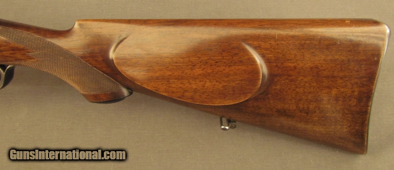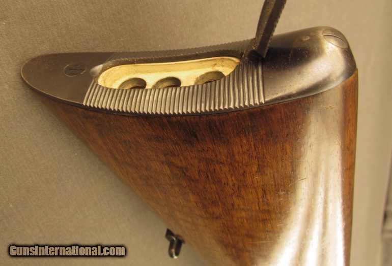 Description: Serial #14190, 8x56mm Mannlicher-Schoenauer, 19 3/4? barrel with an excellent, bright bore. This is a fabulous little carbine that retains 97-98% of the original rich, commercial blue finish that has faded slightly along the high edges and projections, and on the bearing surfaces of the bolt. The straw color remains on the small parts and the original bright color case-hardening is still present on the lower wrist tang. The pre-war Austrian proofs and factory markings are crisp and sharp, and the bolt latch has most of the original bright fire blue remains. The full-length walnut stock has a rounded, continental cheek-piece and is in excellent condition with crisp original checkering and a few negligible handling marks in the original oil finish. The rifle is equipped with double set triggers and grooved horn buttplate. This is an excellent example of a desirable Mannlicher-Schoenauer sporting rifle, and would make a fantastic addition to any collection. FFL or C&R SOLD Curio/Relic: Yes Manufacturer: Mannlicher Schoenauer Model: 1908 Serial Number: 14190 Caliber Info: 8mm Gauge Info: 8mm |
