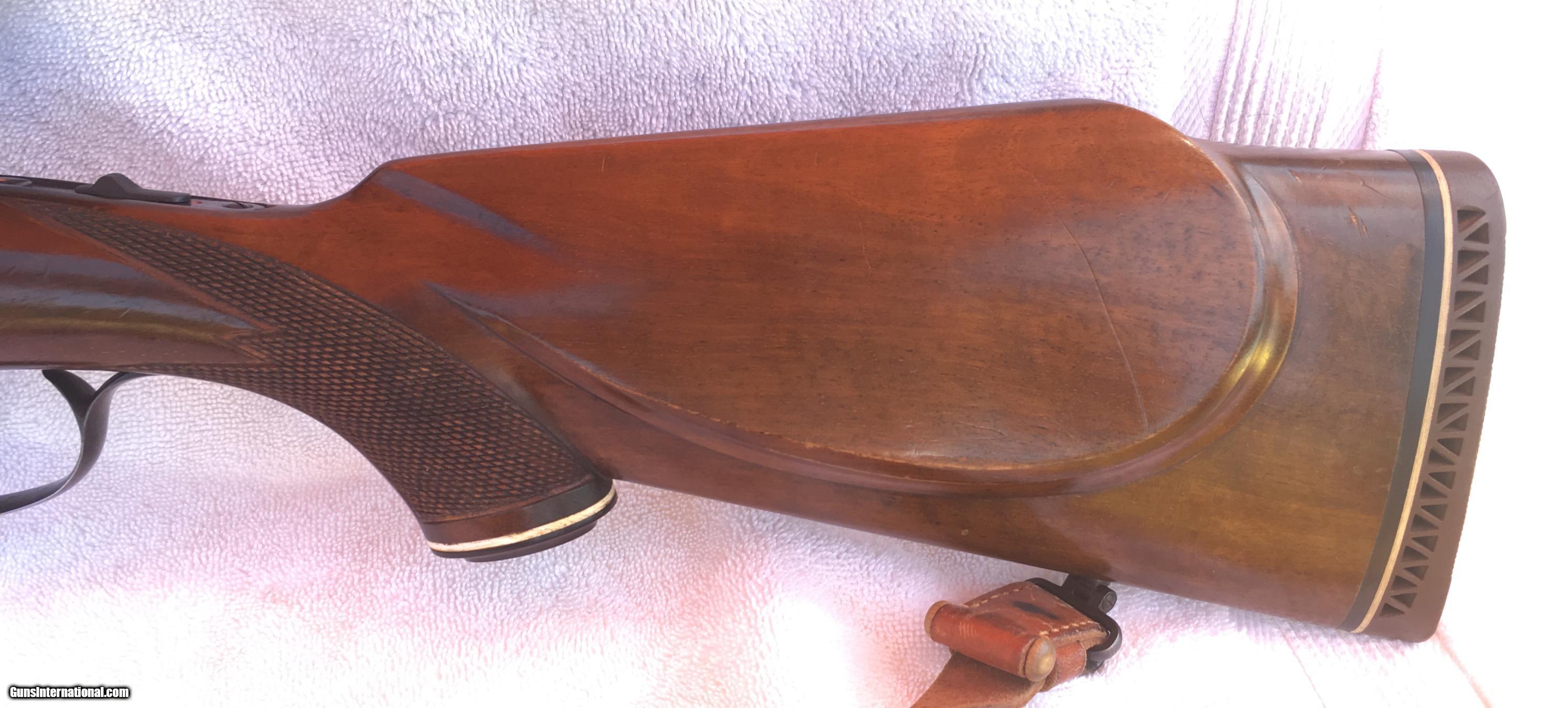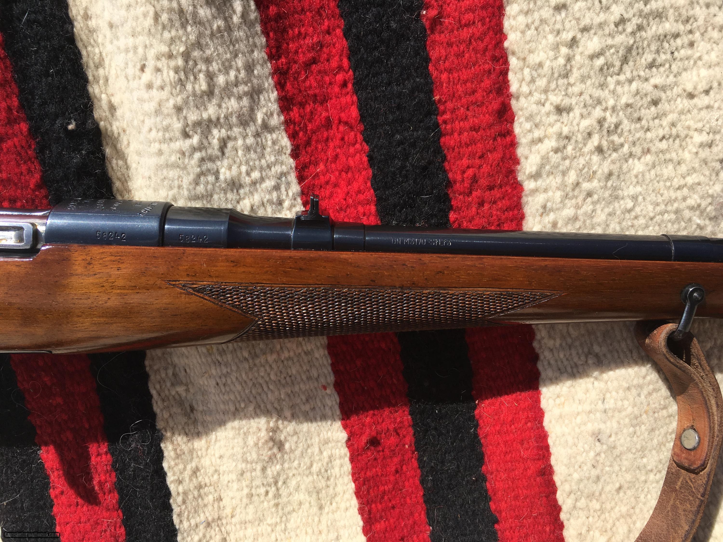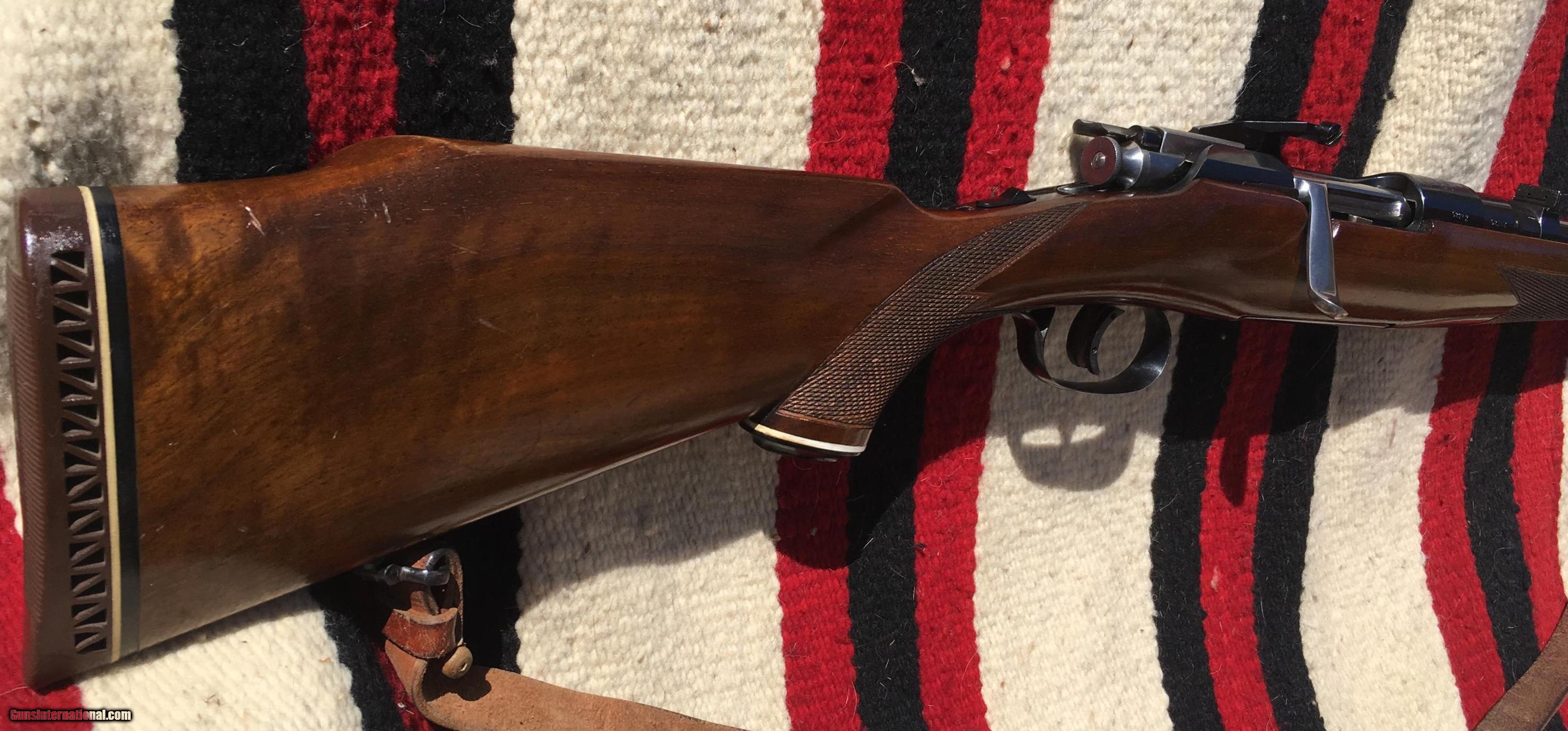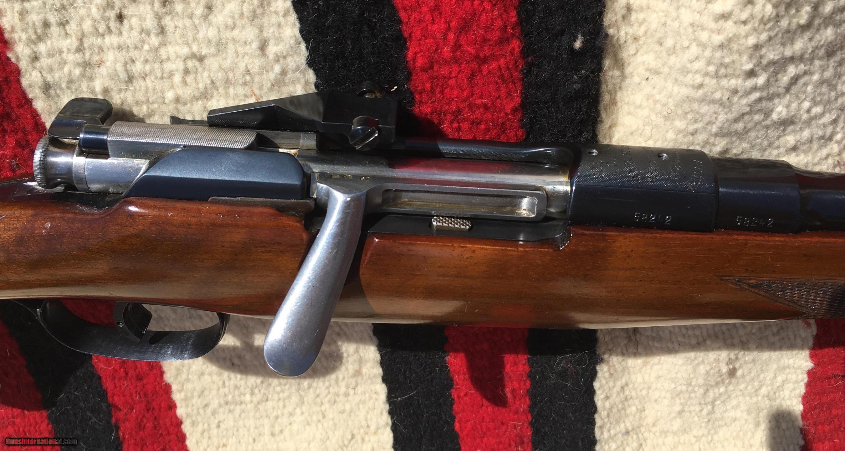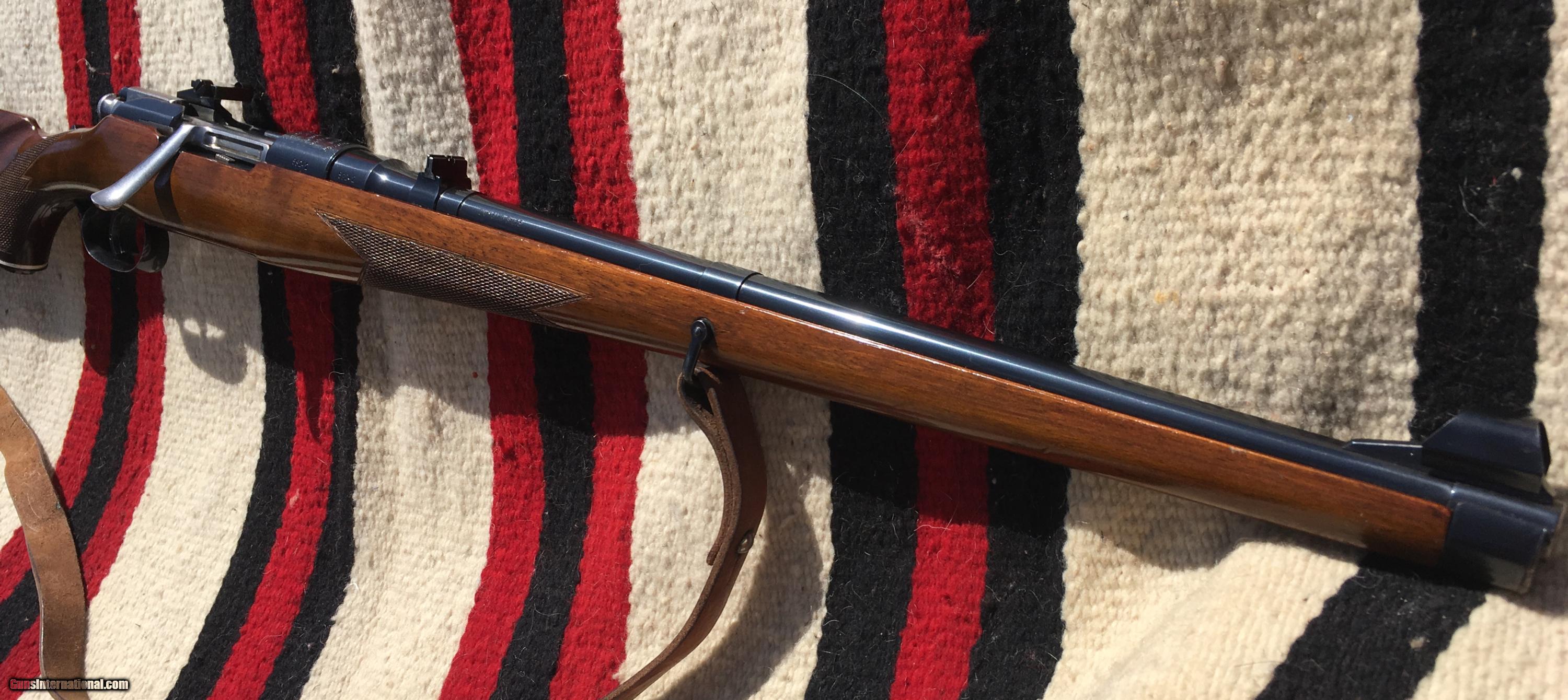 Description: FULL STOCKED 20" BARREL WITH 2 LEAF EXPRESS SIGHT WITH FACTORY ORIGINAL REDFIELD SR-MS RINGS & BASES & LEUPOLD VXII 3X9 OPTIC S.T. 13.5 LOP TO END OF PACHMAYR PAD GUN IS FINE TO EXCELLENT CONDITION SLIGHT HANDLING MARKS ON STOCK. GREAT GUN EXCELLENT CALIBER IN .308 MILITARY INNEXPENSIVE AND PLENTY OF AMMO. SALE PENDING SOLD Manufacturer: MANNLICHER SCHÖNAUER Model: 1961 MCA CARBINE Serial Number: 58242 Caliber Info: 308 Condition: FINE Metal Condition: EXCELLENT Wood Condition: FINE Bore Condition: EXCELLENT Barrels: 20 Action: BOLT Triggers: SINGLE Stock: FULL MONTE CARLO Butt Pad: PACHMAYR LOP: 13.5 Finish: BLUE Sights: EXPRESS LEAF Item Location: CALIFORNIA |