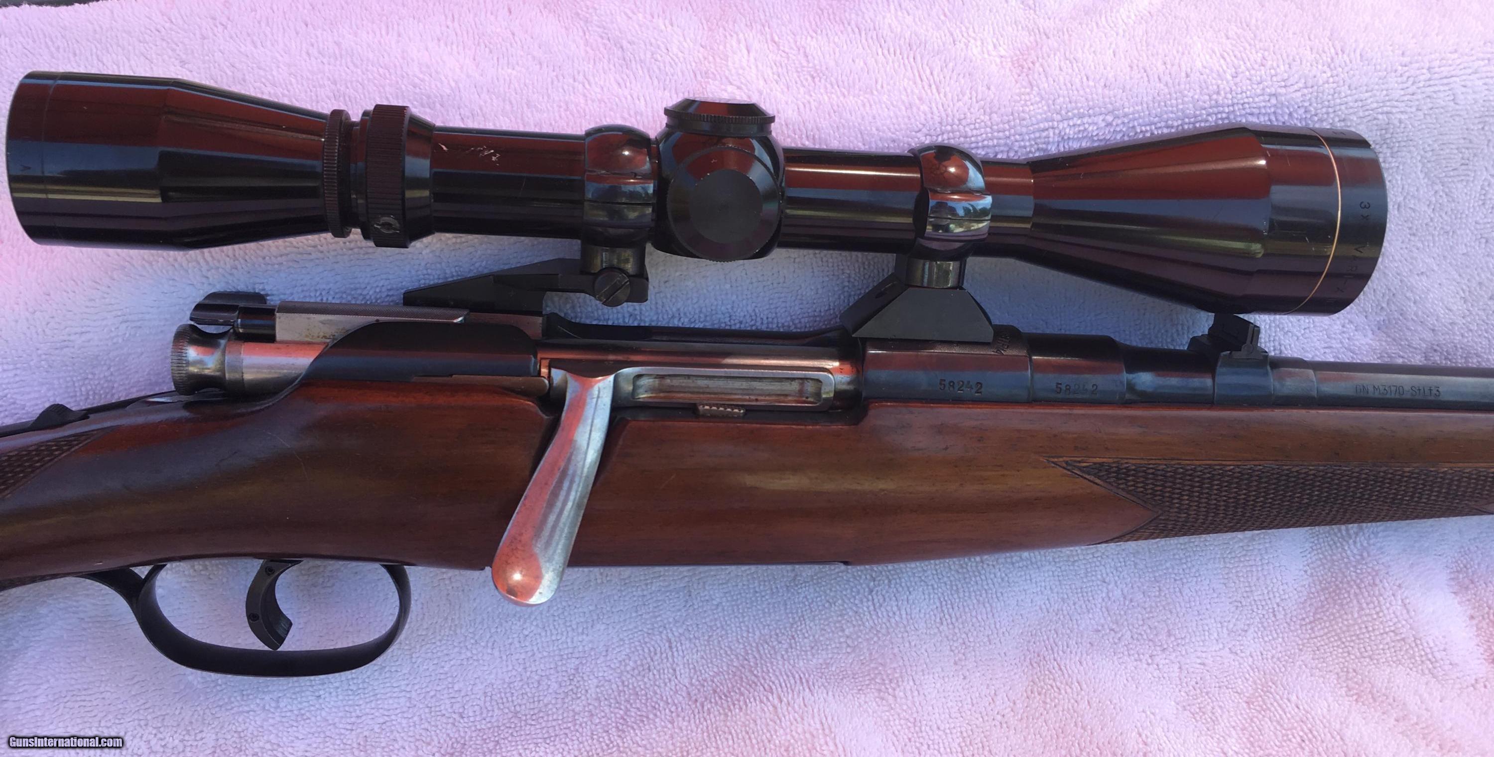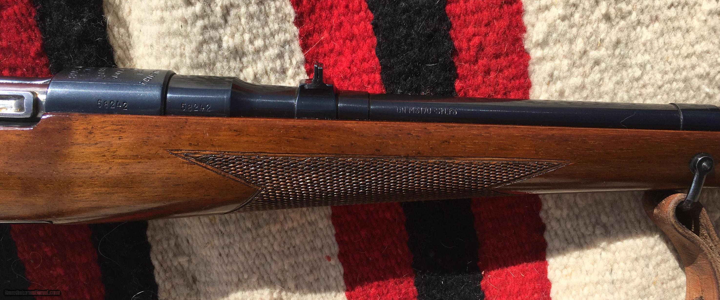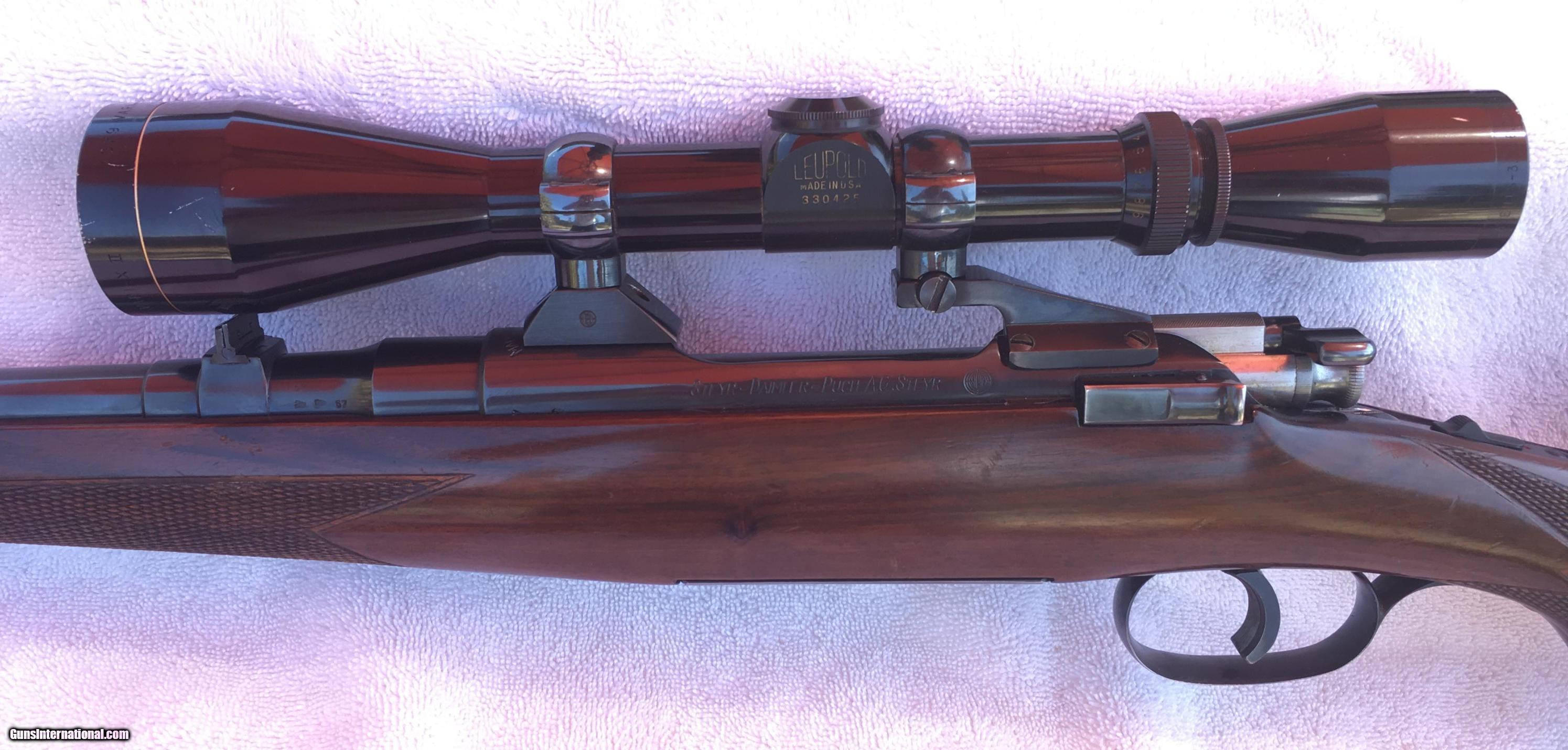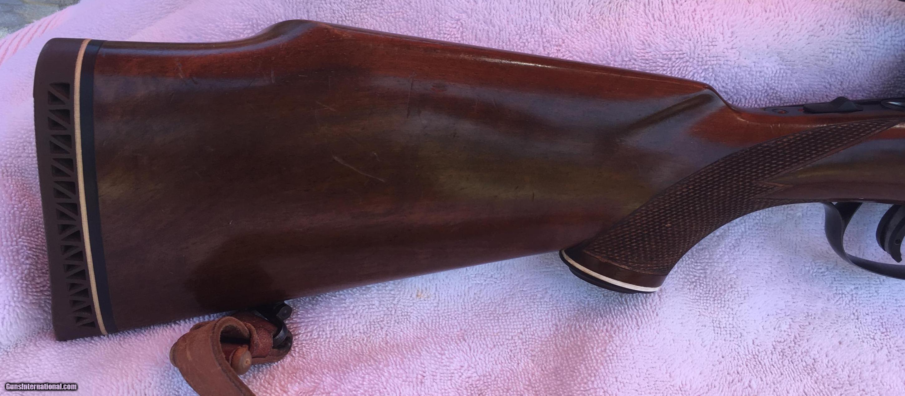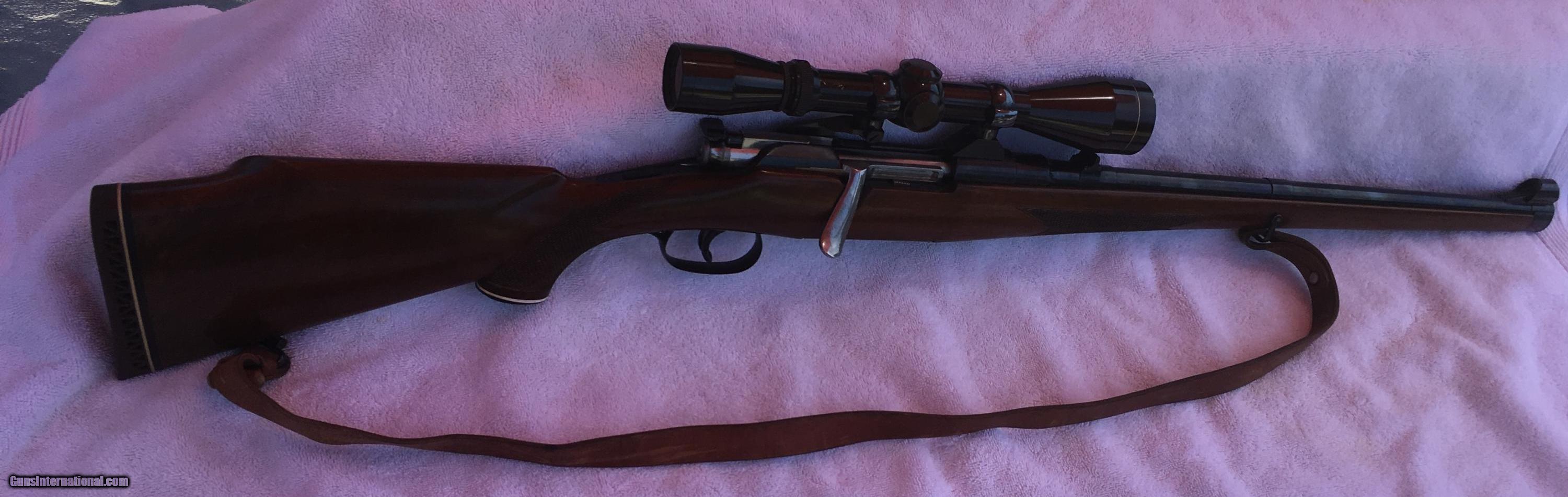 Description: FULL STOCKED 20" BARREL WITH 2 LEAF EXPRESS SIGHT WITH FACTORY ORIGINAL REDFIELD SR-MS RINGS & BASES & LEUPOLD VXII 3X9 OPTIC S.T. 13.5 LOP TO END OF PACHMAYR PAD GUN IS FINE TO EXCELLENT CONDITION SLIGHT HANDLING MARKS ON STOCK. GREAT GUN EXCELLENT CALIBER IN .308 MILITARY INNEXPENSIVE AND PLENTY OF AMMO. SALE PENDING SOLD Manufacturer: MANNLICHER SCHÖNAUER Model: 1961 MCA CARBINE Serial Number: 58242 Caliber Info: 308 Condition: FINE Metal Condition: EXCELLENT Wood Condition: FINE Bore Condition: EXCELLENT Barrels: 20 Action: BOLT Triggers: SINGLE Stock: FULL MONTE CARLO Butt Pad: PACHMAYR LOP: 13.5 Finish: BLUE Sights: EXPRESS LEAF Item Location: CALIFORNIA |