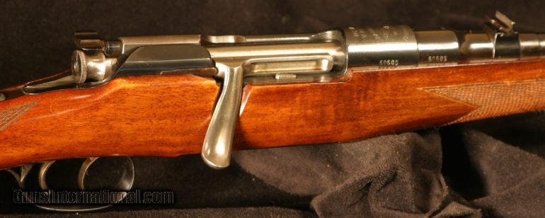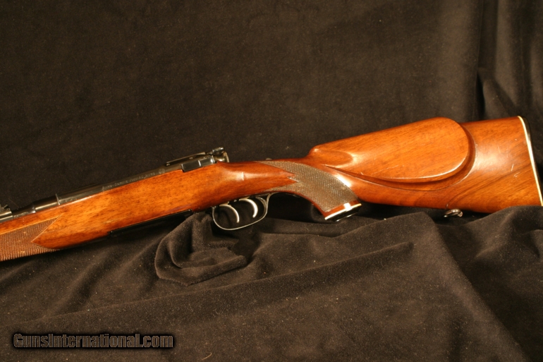 Description: 1965 full stock 20" carbine,all originial MCA . Factory Drilled and tapped. Few hunting marks,great hunter with the later European flair. SOLD |