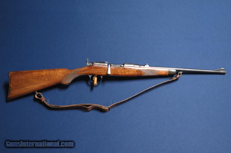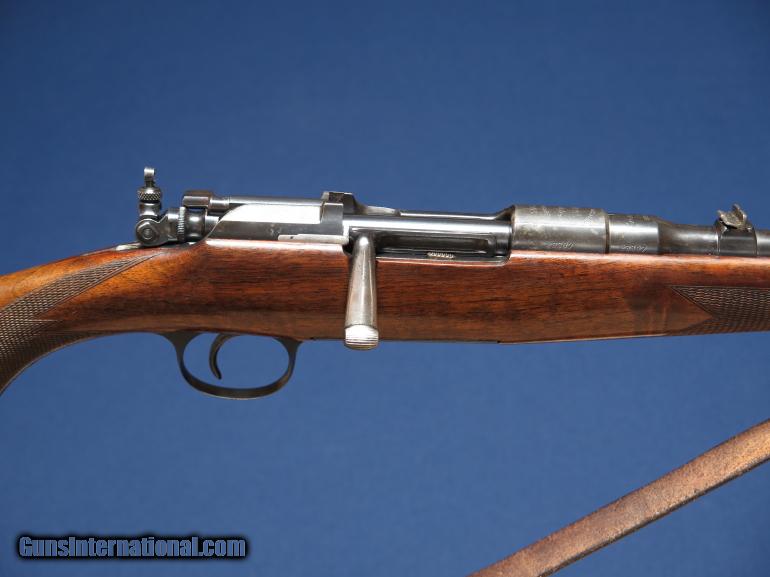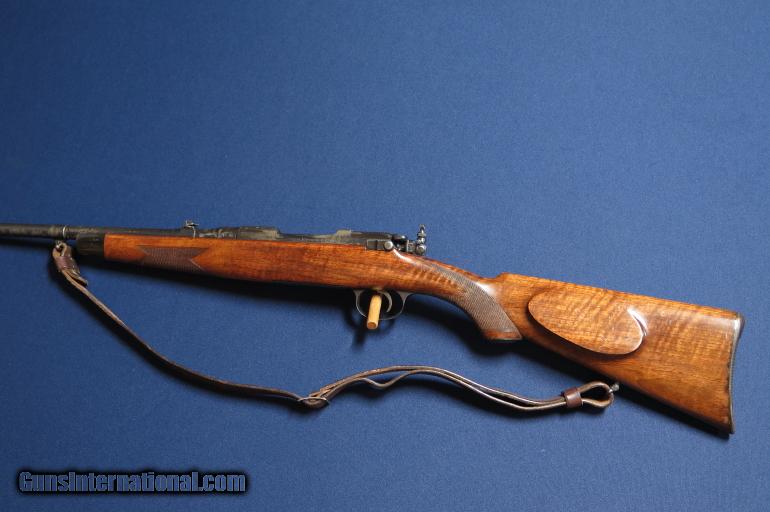 Description: Mannlicher Schoenauer 1903 6.5x54. 18" barrel. bolt peep. 90% blue. 96% varnish. Excellent bore. SOLD |