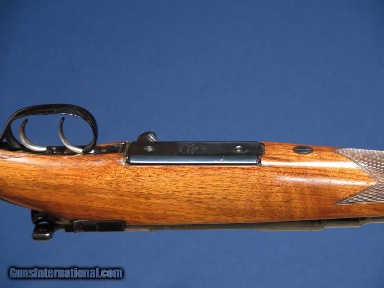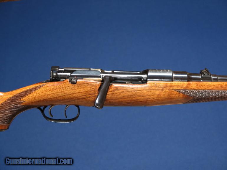 Description: Mannlicher Schoenauer 1952 Carbine 6.5x54. 18 1/2" barrel. Double set triggers. 1 fold down 1 standing rear sight. 98%. Excellent bore. SOLD |