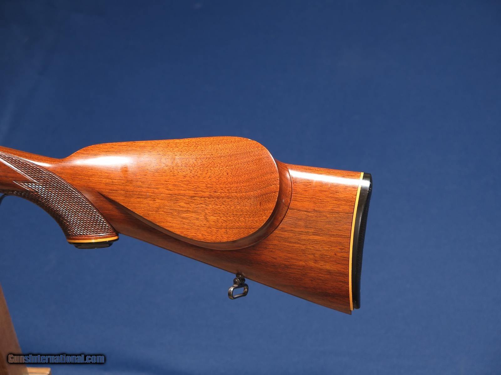 Description: Mannlicher Schoenauer 1956 243. 20 inch barrel. Paul Jaeger side mount. Gun had double triggers. Single trigger fires gun. Butt plate cracked. Two hairline cracks in wood in toe of stock. SN 22,8XX. Excellent bore. SOLD Rifle Caliber: .243 Winchester |