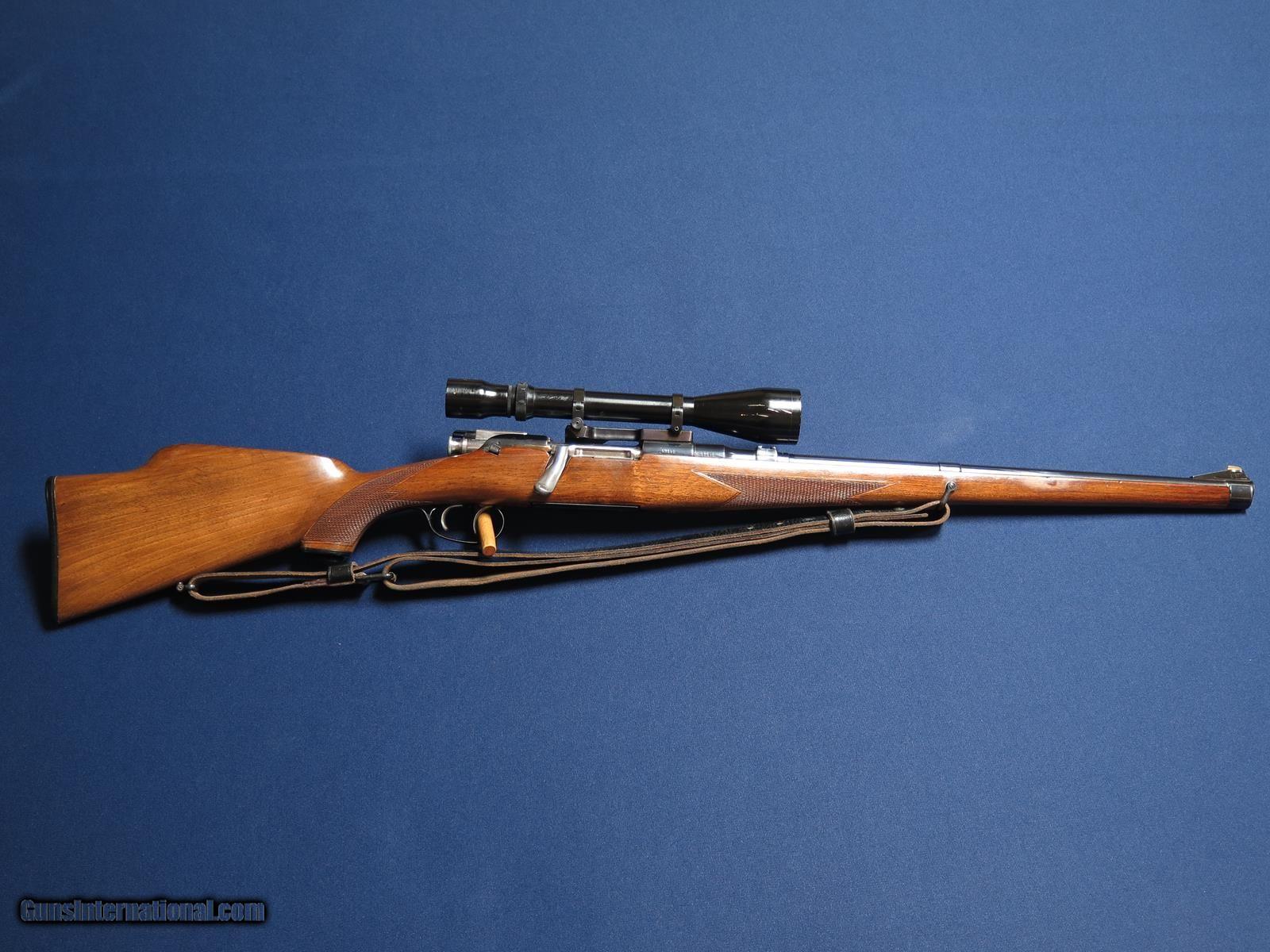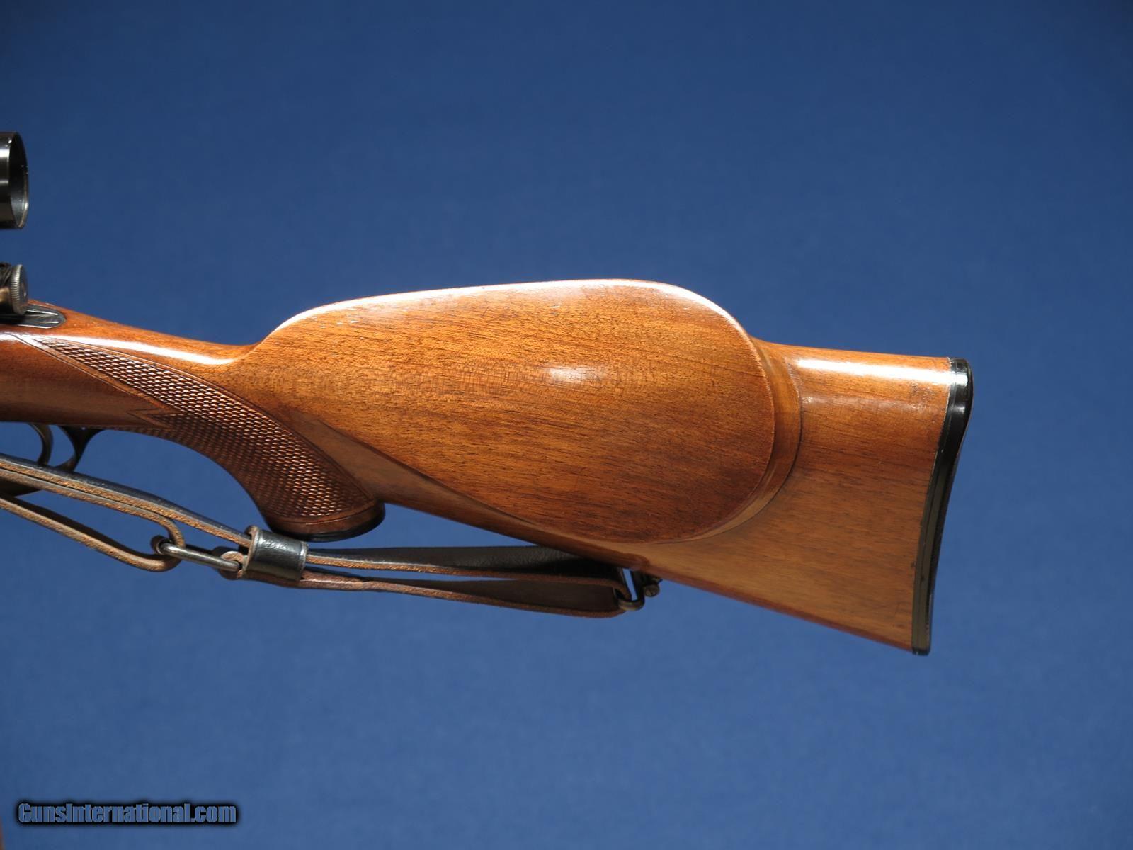 Description: Mannlicher Schoenauer 1956 MC 257 Roberts. 20.5 in barrel. Double set triggers. Leupold mount with Bausch & Lomb Balvar 8 Scope. Missing rear sight. 96-97%. Excellent bore. SOLD |