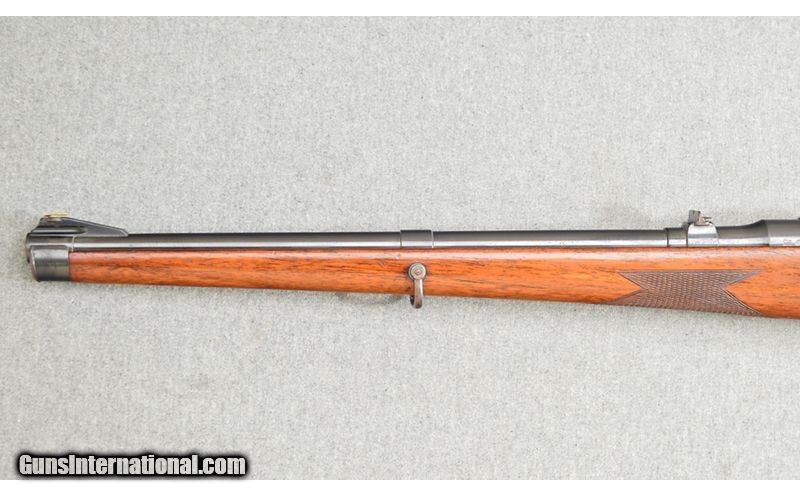 Description: For your consideration, a Mannlicher-Schoenauer M.1903 chambered in 6.5×54. The full length Mannlicher-type stock featured a horn grip cap and pancake cheekpiece. Prospective owners can expect perfect mechanical functionality, and scattered light rust confined mostly to the buttplate and end cap. 6.5x54mm SOLD Metal Condition: Very Good Wood Condition: Very Good Bore Condition: Very Good Barrels: 18 Triggers: Double Trigger Stock Dimensions: 14" LOP Fore End: Checkered Butt Pad: Ribbed Steel Weight: 7 lbs Sights: Iron Sights Item Location: Hamburg, PA |