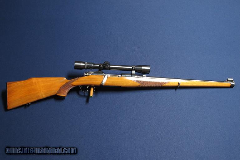 Description: Mannlicher Schoenauer MCA 243 Carbine. 20in barrel. Detachable scope mounts. Weaver 3x9 scope. 98%. Excellent bore. SOLD |