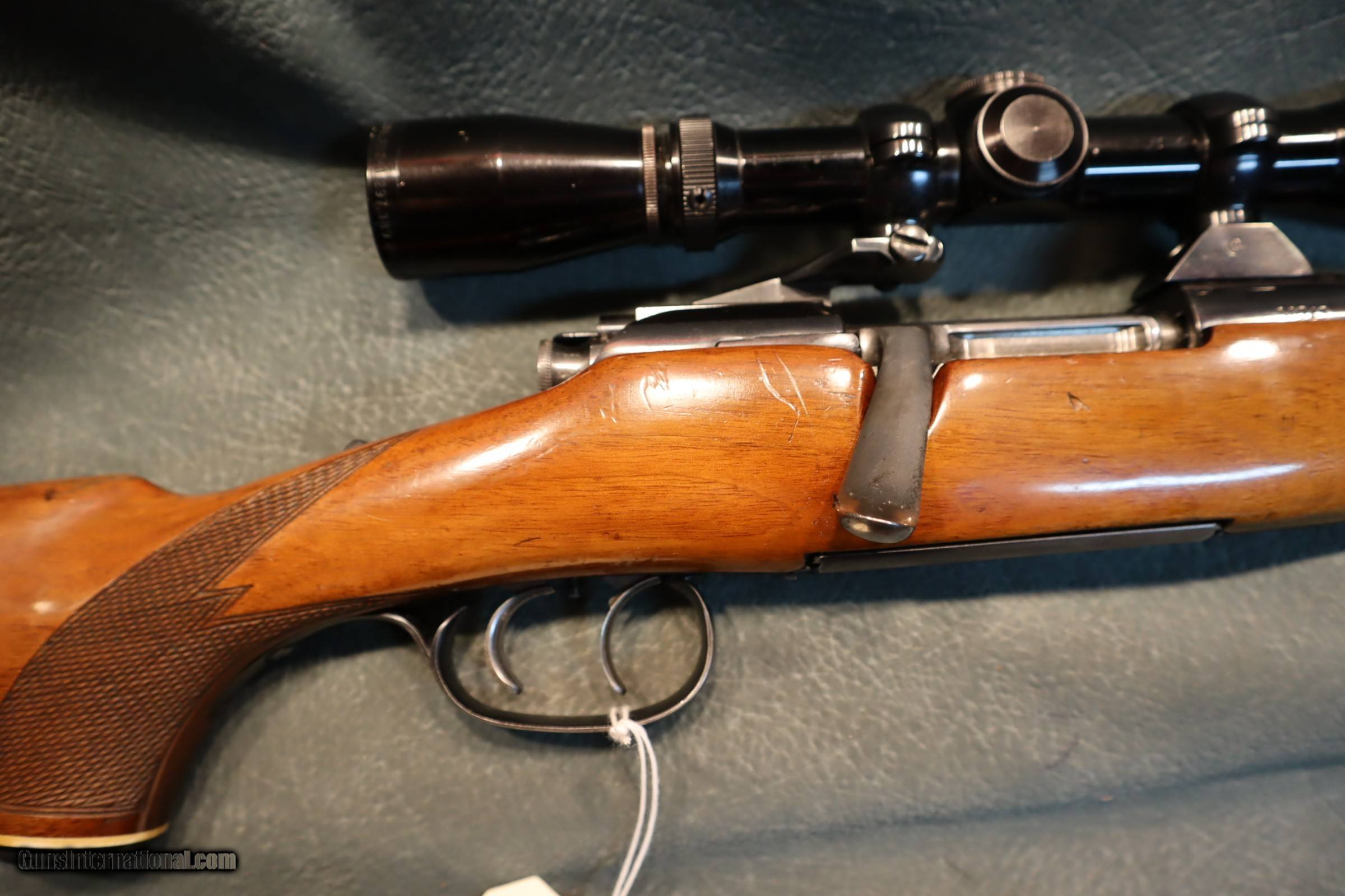 Description: Mannlicher Schoenauer MCA 30-06,full Mannlicher stock with cheekpiece,20" barrel with 1 standing and 1 folding rear sight blades,hooded front sight,double set triggers,Leupold 3-9x gloss scope and mounts. GUN COLLECTIONS WANTED FOR CASH! We buy, sell, consign and trade new and used firearms.We will pay finders fees and travel for large collections. This is our 47th year in business. We offer 90 day layaways with 20% down. No return on layaways. Firearms will need to be transferred through a FFL dealer. Prices reflect a cash discount. There will be 3% added to credit card sales. We trade for gold and silver. THANK YOU! SOLD |