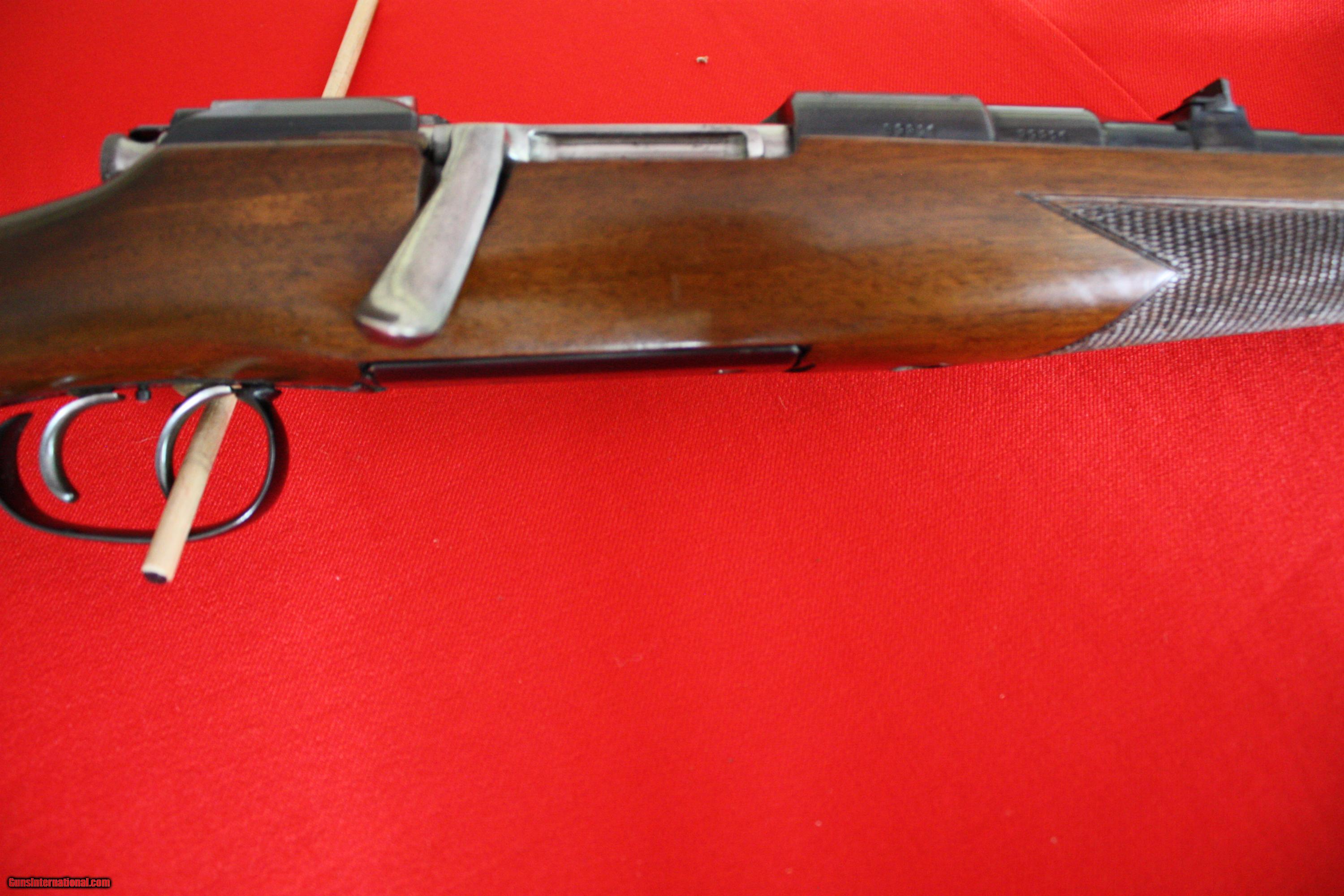 Description: Mfg from 1961 - 1971. Full stock Mannlicher Schoenauer Carbine in .30-06 cal. Minor marks on stock. No cracks. Metal is in good shape. SOLD Curio/Relic: Yes Manufacturer: Steyr Mannlicher Schoenauer Model: MCA Carbine Serial Number: 538xx Caliber Info: .30-06 Condition: V. Good Metal Condition: V. Good Wood Condition: V. Good Bore Condition: Nice |
