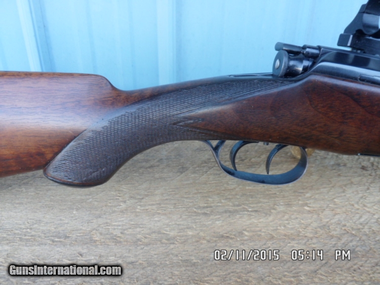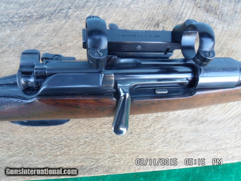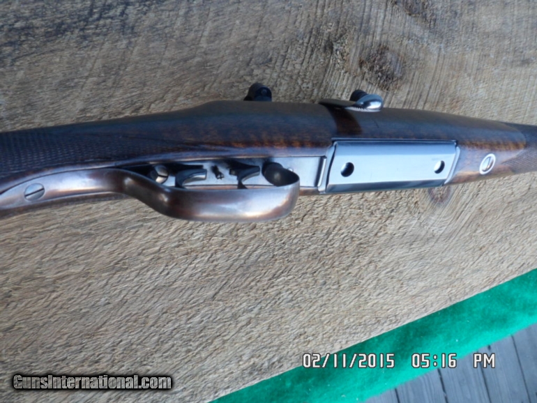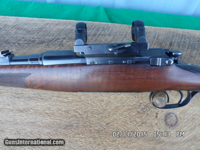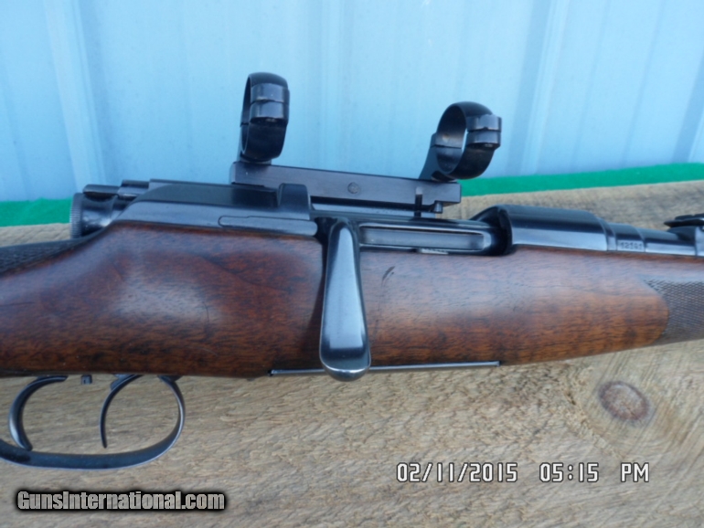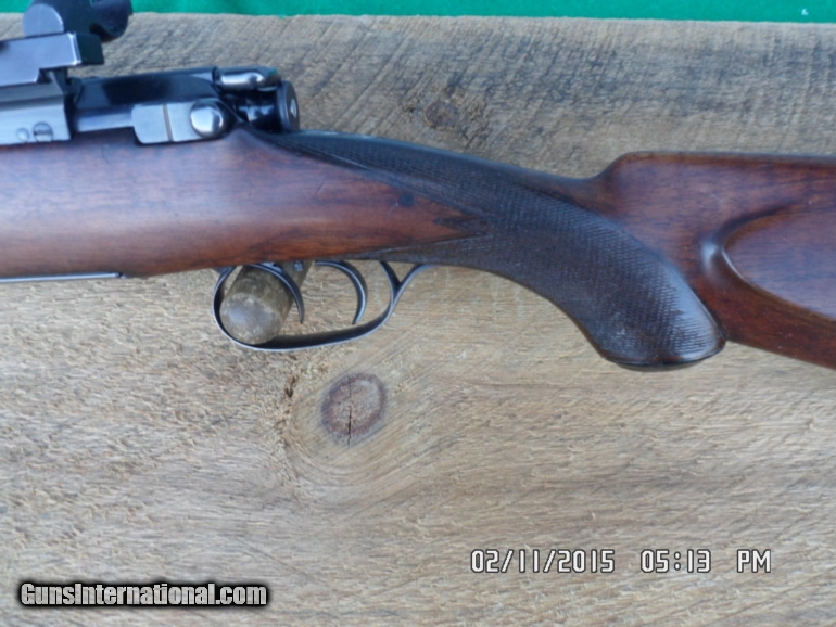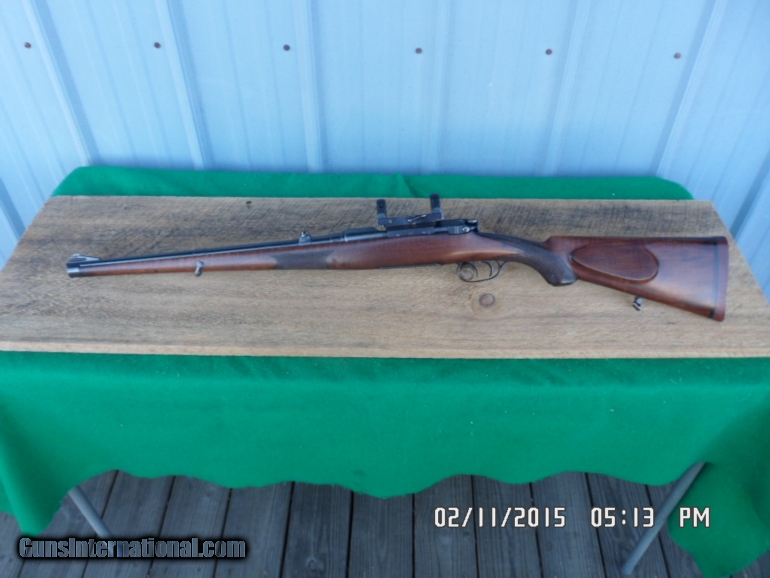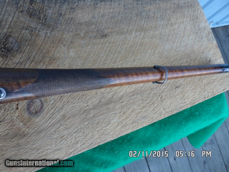 Description: MANNLICHER-SCHOENAUER MODEL 1903 MTN.CARBINE 6.5X54MM CALIBER,17.7" BARREL WITH EXCELLENT BORE AND EXPRESS SIGHTS.90% PLUS OVERALL METAL BLUE,DOUBLE SET TRIGGERS AND DETACHABLE MAGAZINE.ORIGINAL FULL LENGHT MANNLICHER CHECKERED AND FIGURED WALNUT STOCK WITH GRACEFUL SEMI-PISTOL GRIP,FACTORY SLING SWIVELS,14 1/2" L.O.P. OVER A EARLIER ADDED NOSHOC RECOIL PAD.STOCK HAS A FEW HANDLING MARKS AND SMALL CHIP OF WOOD MISSING AT FRONT STOCK CAP.HAS A PERIOD PAUL YAEGER PROFFESSIONALY ADDED SIDE SCOPE MOUNT ADDED IN ITS EARLY YEARS,AND VERY WELL DONE.A SWEET 5.5 LB. MOUNTAIN CARBINE IN A GREAT CALIBER. 1695.00 PLUS 40.00 SHIPPING. CALL DANNY AT 828-243-6269 IF NEEDED.GOD BLESS YOU ALL! SOLD |