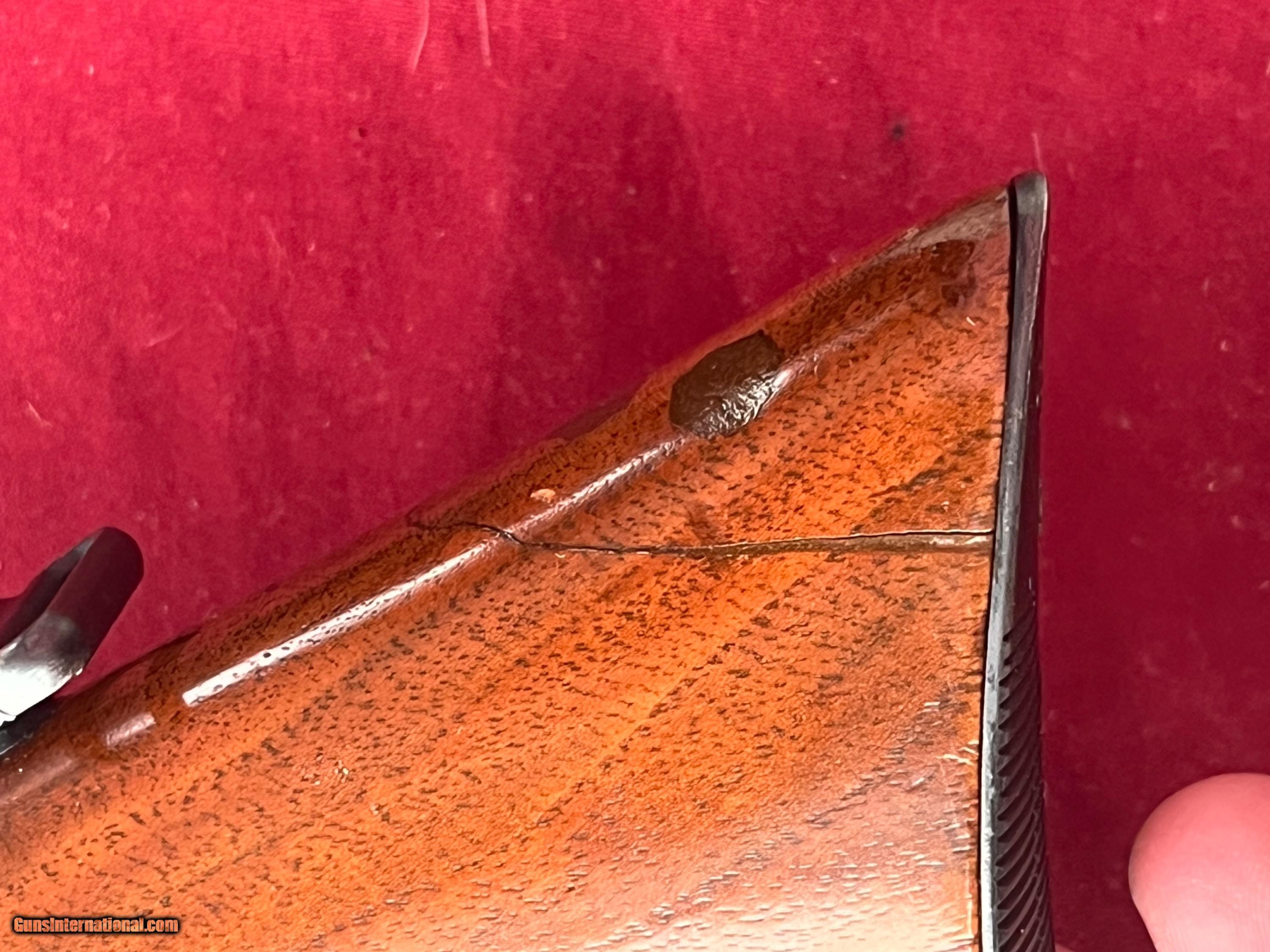 Description: MANNLICHER SCHOENAUER MODEL 1903 SPORTING CARBINE, SER# 2179, CALIBER 6.5x54mm.( CALIBER NOT MARKED - HAVE IT CHECKED OUT BEFORE FIRING) 6.5x54mm WAS THE STANDARD CALIBER FOR THE 1903 CARBINE, 5- SHOT ROTATORY MAGAZINE, 17.7 INCH BARREL WITH AN EXCELLENT BRIGHT BORE. TOP OF THE BARREL IS MARKED " C. STEGELE MUNCHEN " Carl Stiegele was Gunmaker to the Bavarian Royal family and probably the greatest German maker of the early cartridge era. He was noted for his sporting and target rifles all of which exhibited the highest craftsmanship and equal to the best English guns of that time. FLAT BUTTER KNIFE STYLE BOLT HANDLE, THREE LEAF FLIP REAR SIGHT, RARER SINGLE TRIGGER, BUTT PLATE CARTRIDGE STORAGE, REALY NEAT FLIP LOLLI POP STYLE REAR APPERTURE REAR TANG SIGHT. VERY NICE WOOD WITH A CHIP REPAIR AT THE TOE. EASTERN BRANCH FIREARMS ADD 50.00 SHIPPING – NEXT DAY AIR SHIPPING ADD 50.00 SHIPPING – LONG GUNS GROUND OPTIONAL INSURANCE IS AVAILABLE AT 1.25 PER 100.00 Questions e-mail or call Glen at Eastern Branch Firearms 207-215-5021 TERMS – PLEASE READ BEFORE I DO NOT HAVE A LAYAWAY OPTION ( WE ACCEPT CREDIT CARDS ) -- I GET ALOT OF REQUEST FOR TRADES, I WOULD PERFER NOT TO DO TRADES ON MY INTERNET LISTINGS PAYMENT OPTIONS- We accept money orders, cashier’s checks , bank checks. sorry no personal checks. We accept all major credit cards please add 3% to the ’s cash discount price.(Shipping within the state of Florida - Florida Residents must pay sales tax) .Handguns and long guns do need to be shipped separate. PLEASE do not send payment via FED EX . USPS & UPS are fine. Thank you. We include a signed copy of our FFL with each firearm shipped. SAFTY NOTICE- Buyer is solely responsible for determining that a used gun is safe to shoot. The firearms offered have not been test fired but have been given a visual inspection only for purposes. It is a requirement that every used firearm is inspected by a qualified gunsmith before firing. By , the buyer agrees to hold seller harmless against damages, injury, or death caused by defective merchandise. RETURN POLICY- All firearms come with a 3-day non firing , non messing with ( turning srews ,taking apart,removing parts, scoping. firing, cleaning or messing with in anyway) inspection/return privilege.Inspection is based on a visual review of the gun to confirm the gun is in the condition stated. In the case of a return, buyer pays all shipping charges & if paid for with a credit card buyer absorbs the 3% credit card charges . So please ask questions BEFORE you bid. Thanks for Looking and Good Luck!! U.S. sales only, no exports…this includes antiques. I will ship to third party for exporting SOLD Curio/Relic: Yes |