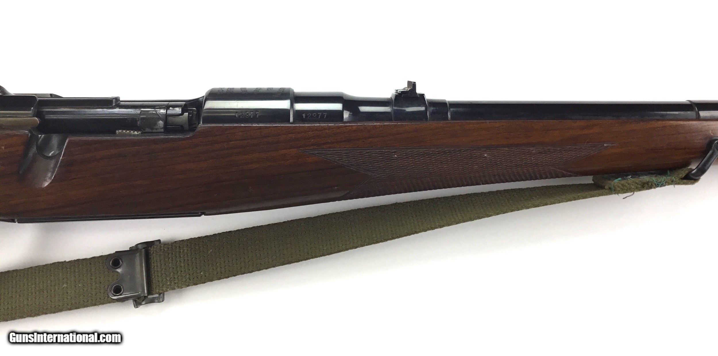 Description: SOLD Mannlicher Schoenauer Model 1952, 30-06, 20” Barrel. Double set trigger, standard full stock model 1952 carbine. Two leaf rear sight, hooded front sight, excellent bore, matching numbers. Minor handling marks. Hampel’s Gun Co since 1919. SOLD SOLD Manufacturer: Steyr-Daimler-Puch A.G., Steyr Model: 1952 Caliber Info: 30-06 |