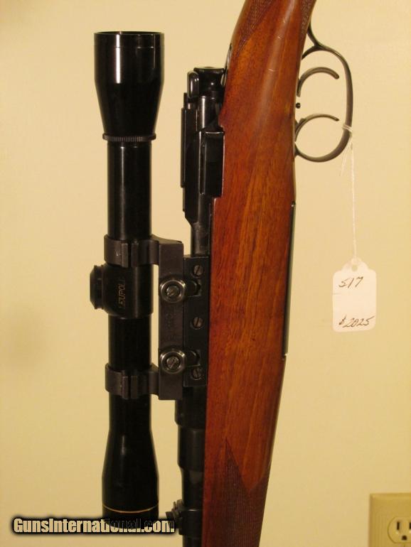 Description: MANNLICHER SCHOENAUER MODEL 1952 CARBINE, 20" bbl., 7X57, SN 79XX, full length stock, checkered PG with cheek rest, original hard rubber buttplate, original open sights, Leupold 4X scope with Echo offset mts., DST, sling swivels, all like new condition. F.F.L. REQUIRED SOLD |