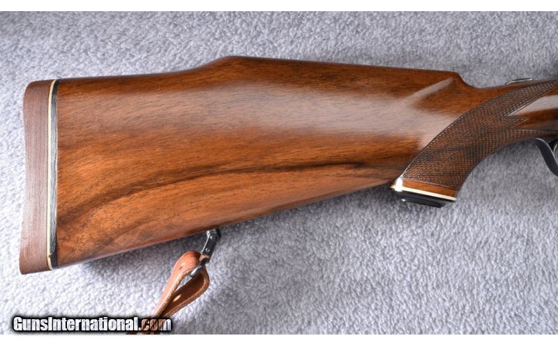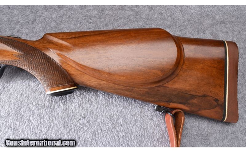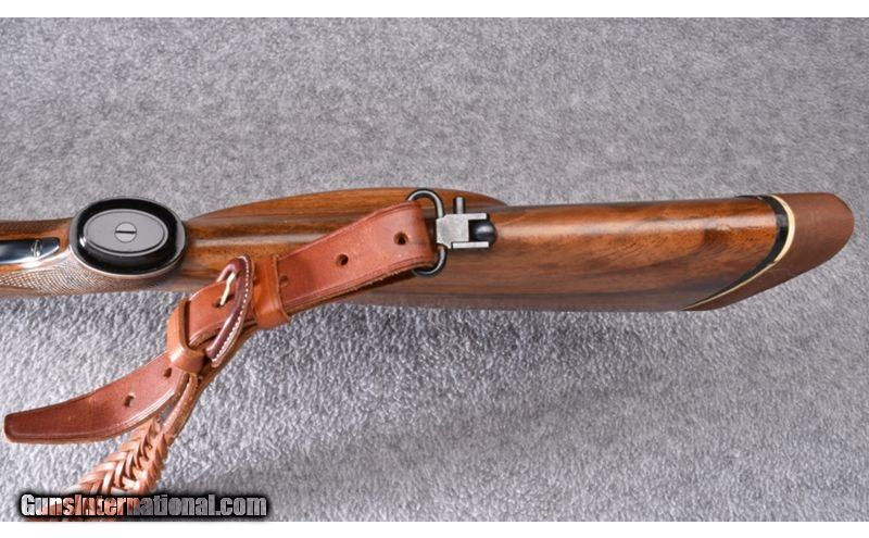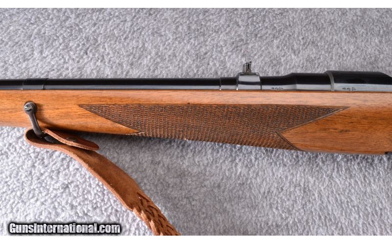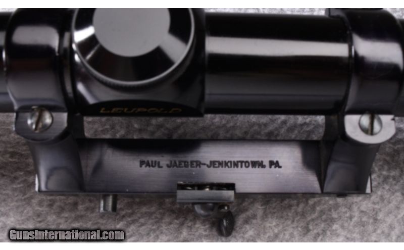 Description: This Austrian made Mannlicher Schoenauer has beautifully figured wood with hand checkering. Wood is in excellent condition showing little use. Blue and bore are also excellent. Butterknife bolt handle and Paul Jaeger (Jenkintown PA) custom quick release scope mount with a Leupold M8 6x42 scope. Gun also has leather sling. This is a beautiful gun! .30-06 Springfield SOLD Metal Condition: Excellent Wood Condition: Excellent Bore Condition: Excellent Barrels: 20 Triggers: Double Set Trigger Stock Dimensions: 15 1/4" LOP Fore End: Hand Checkered Pistol Grip Stock with Black Pistol Grip Cap - Hand Checkered Forearm Butt Pad: Pachmayr Whiteline Checkered Brown Butt Pad Weight: 8 lb. Sights: Brass Blade Front - Two Leaf Folding Rear - Leupold M8 6x42 Quick Release Scope Item Location: Wheeling |