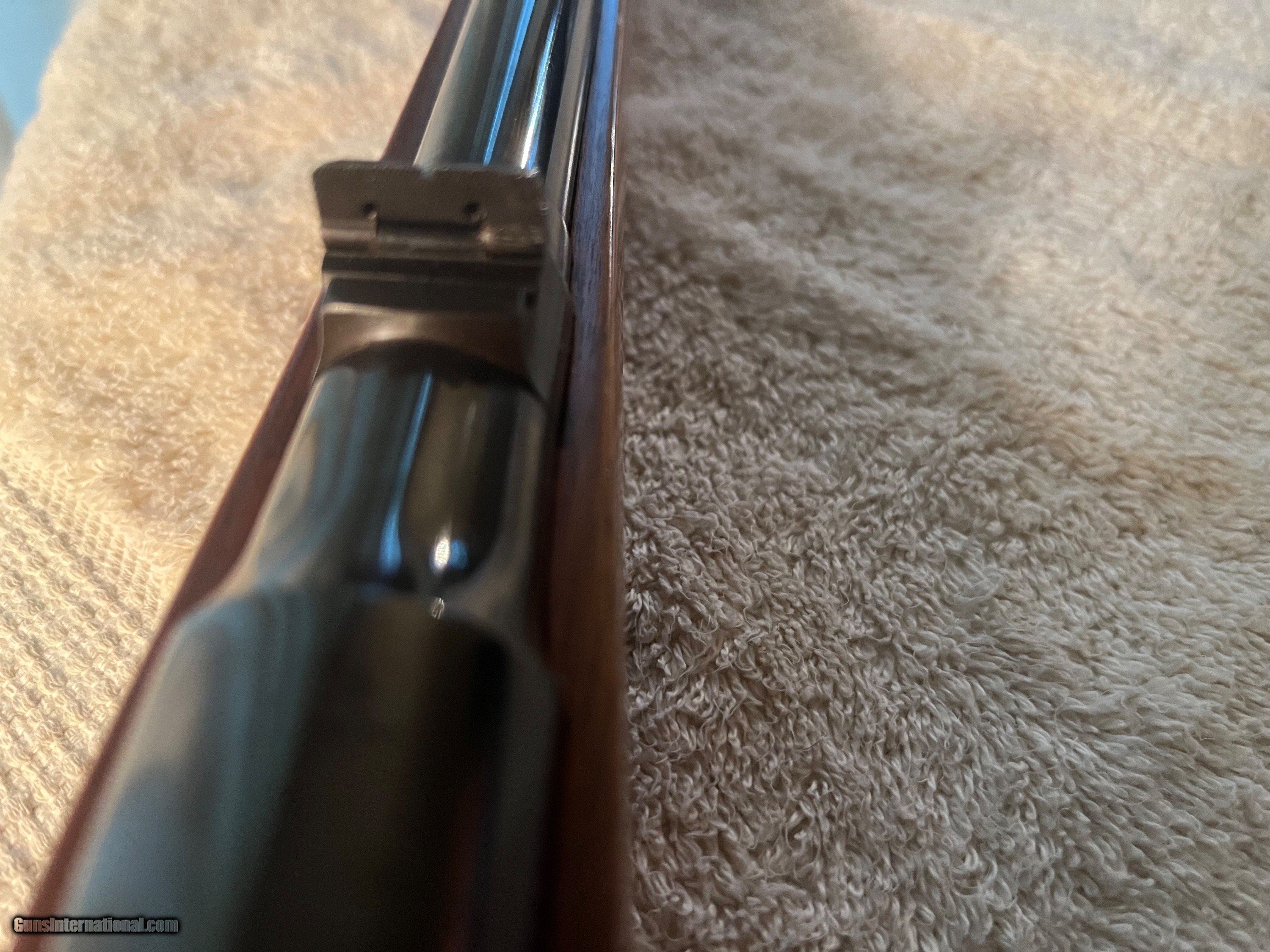 Description: Brand New Original Mannlicher Schoenauer Model MC Kal 30-06 Carbine Mfg 1956-1961, 20" Barrel, full length stock, 14 1/2" length of pull, 40 1/2" overall. Double set triggers, Rotary magazine, 300m flip-up rear sight. Unfired rifle is pristine, collector quality. Has 2 very lite closet clashmarks on right side of buttstock. C & R OK. Shipping to 48 Lower states included. SOLD Curio/Relic: Yes Rifle Caliber: .30-06 Springfield Manufacturer: Steyr Daimler-Puch AG Model: MC Serial Number: 28820 Barrel Length: 20 Condition: Excellent Metal Condition: Excellent Wood Condition: Excellent Bore Condition: Excellent Weight: 7 Lb 5 oz |