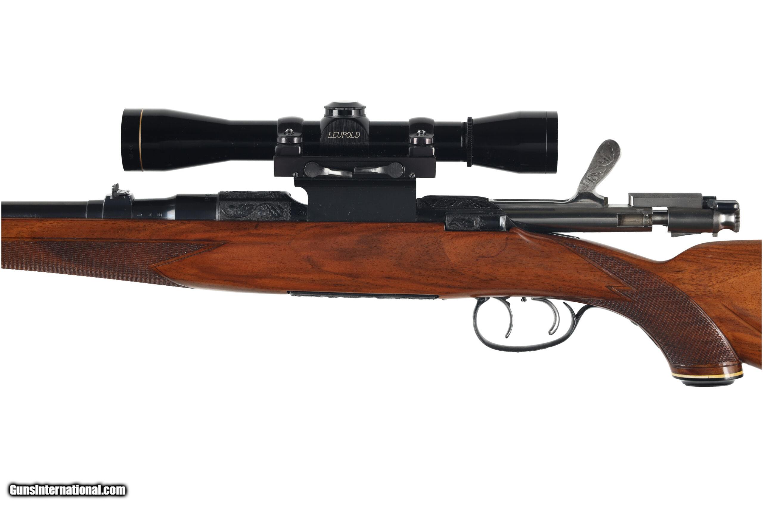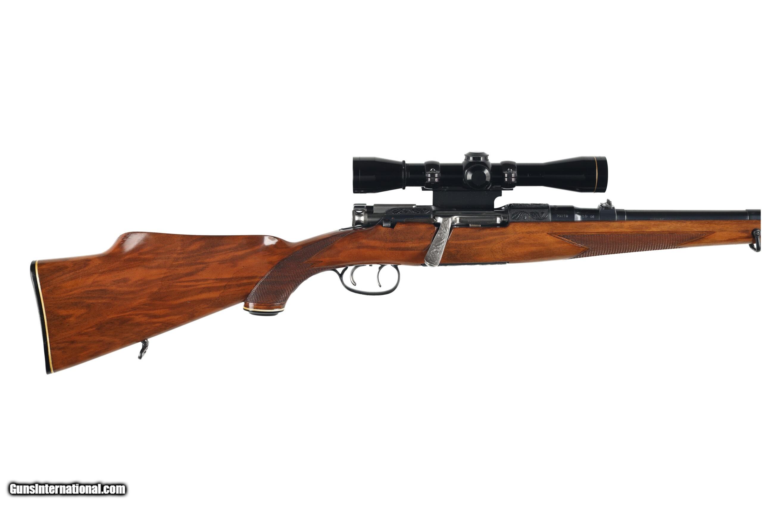 Description: The Mannlicher-Schönauer sporting rifles started production in 1903 and continued until 1971, known for their quality and incredibly slick actions, they were a sought after rifle for many years. This Premier model is in excellent overall condition, with the only wear being some minor finish loss on the barrel. this rifle has also been equipped with a Leupold scope on a Griffin & Howe side mount. Manufactured in: Austria Hand: Right Hand Action Finish: Engraved Metal Finish: Original Barrel Length: 20 Inches Barrel Condition: Very Good Stock Finish: Original Stock Condition: Very Good Type of Butt: Factory Plate Grip: Pistol SOLD Manufacturer: Mannlicher Schoenauer Model: Premier Caliber Info: 30-06 Condition: Preowned Metal Condition: Excellent Action: Bolt Action Triggers: Set Trigger LOP: 14 1/8 Finish: Original Weight: 8.5 lbs Case: NONE |