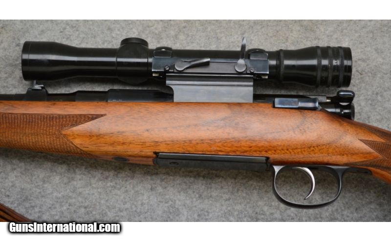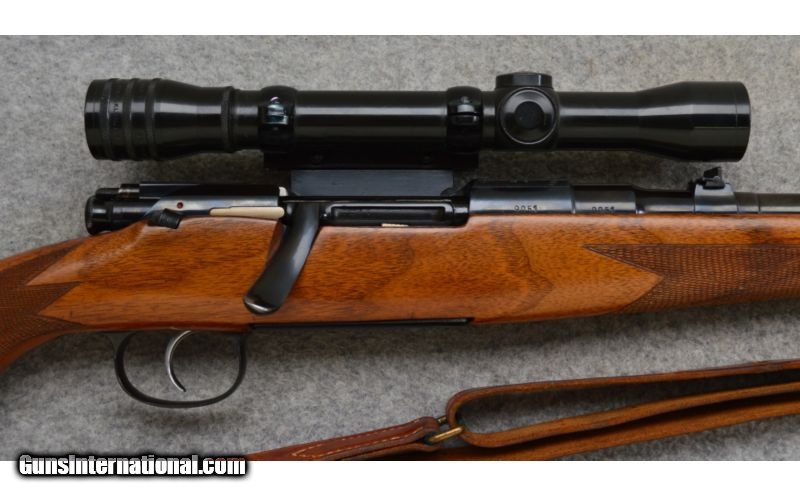 Description: Very good condition overall with normal handling wear. Stoeger Import features a Kollmorgen Optical Co. 4x scope on a Griffen & Howe detachable side mount, Boyt sling on Jaeger quick detachable swivels. SOLD Curio/Relic: Yes Manufacturer: Circa: 1952 Caliber Info: .30-06 Springfield Metal Condition: Very Good Wood Condition: Very Good Bore Condition: Very Good Barrels: 23" Blued Steel Triggers: Single Stage Trigger Stock: Deluxe Checkered Walnut Stock with Raised Cheekpiece Stock Dimensions: LOP: 14 1/4 Fore End: Black Tip Butt Pad: Synthetic Butt Plate Weight: 8 lbs. 12 ozs. Sights: Kollmorgen 4x scope on Griffen & Howe QD Side Mounts Item Location: Hamburg, PA |
