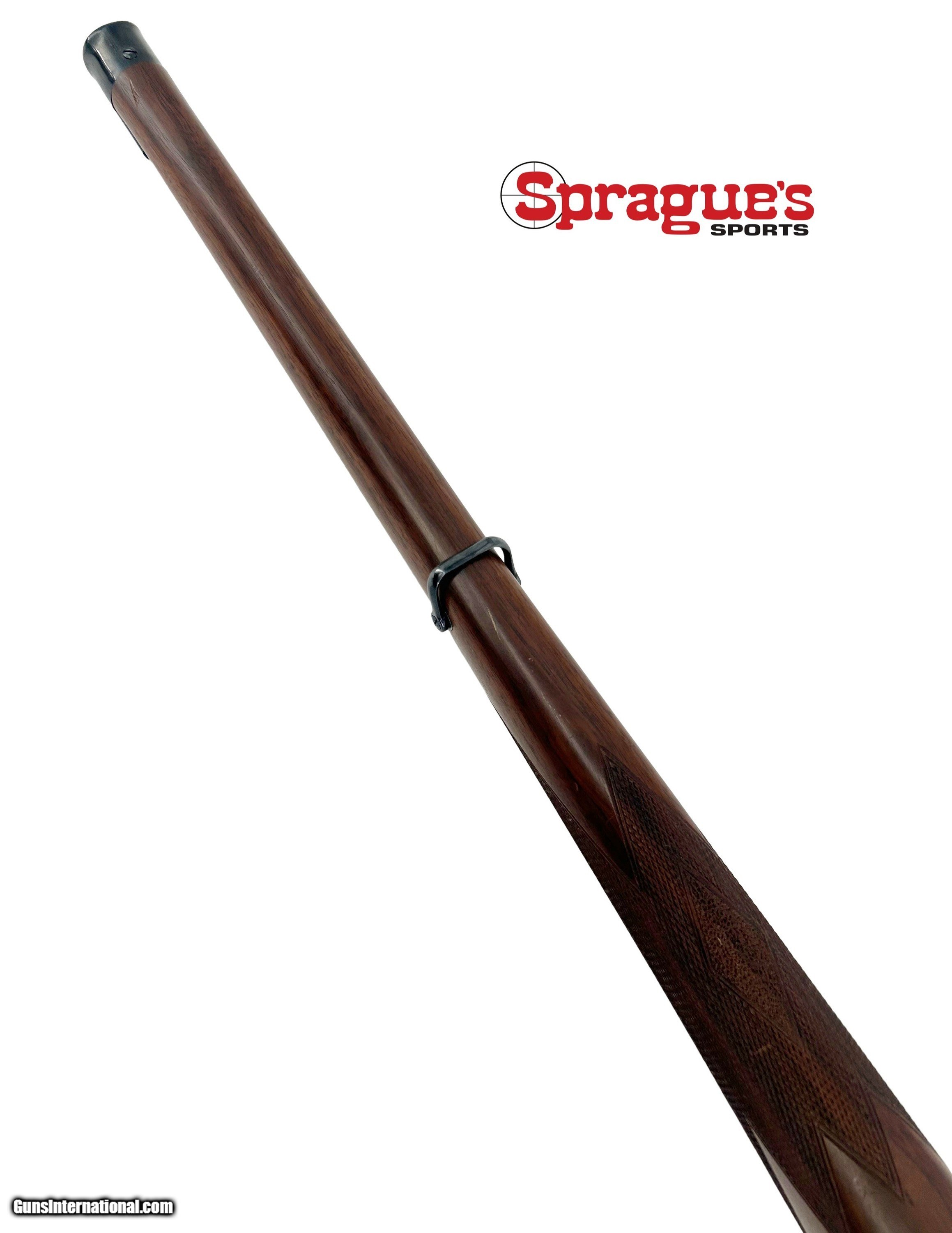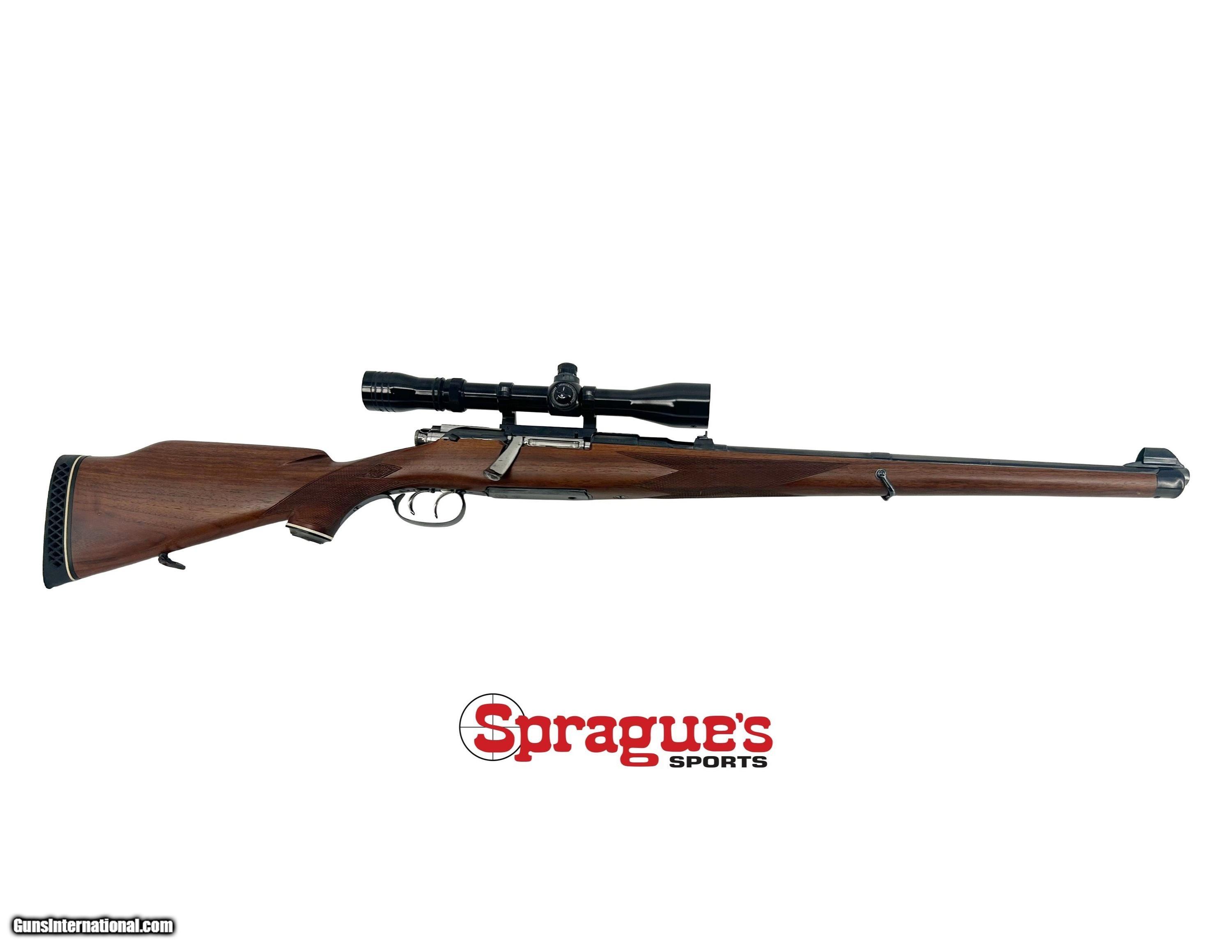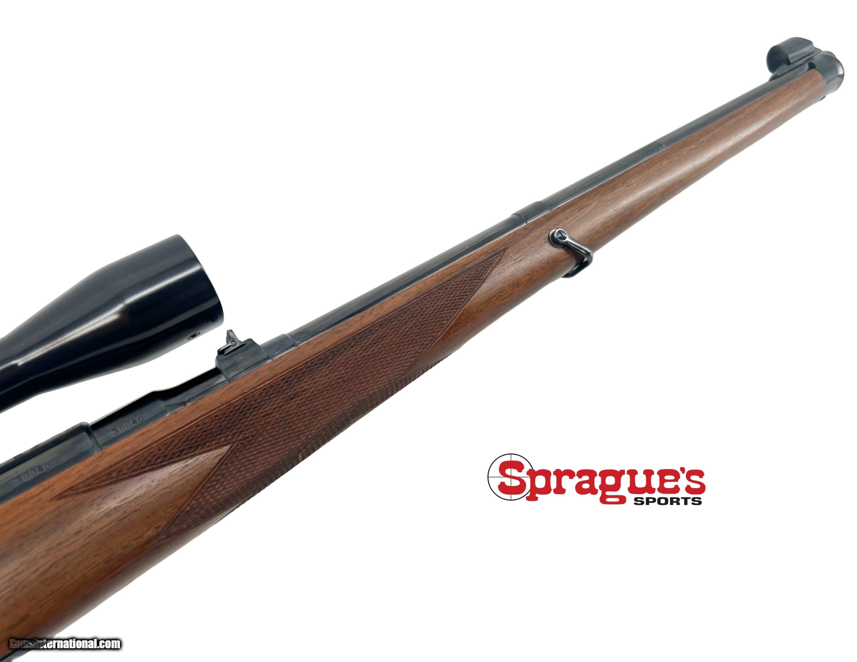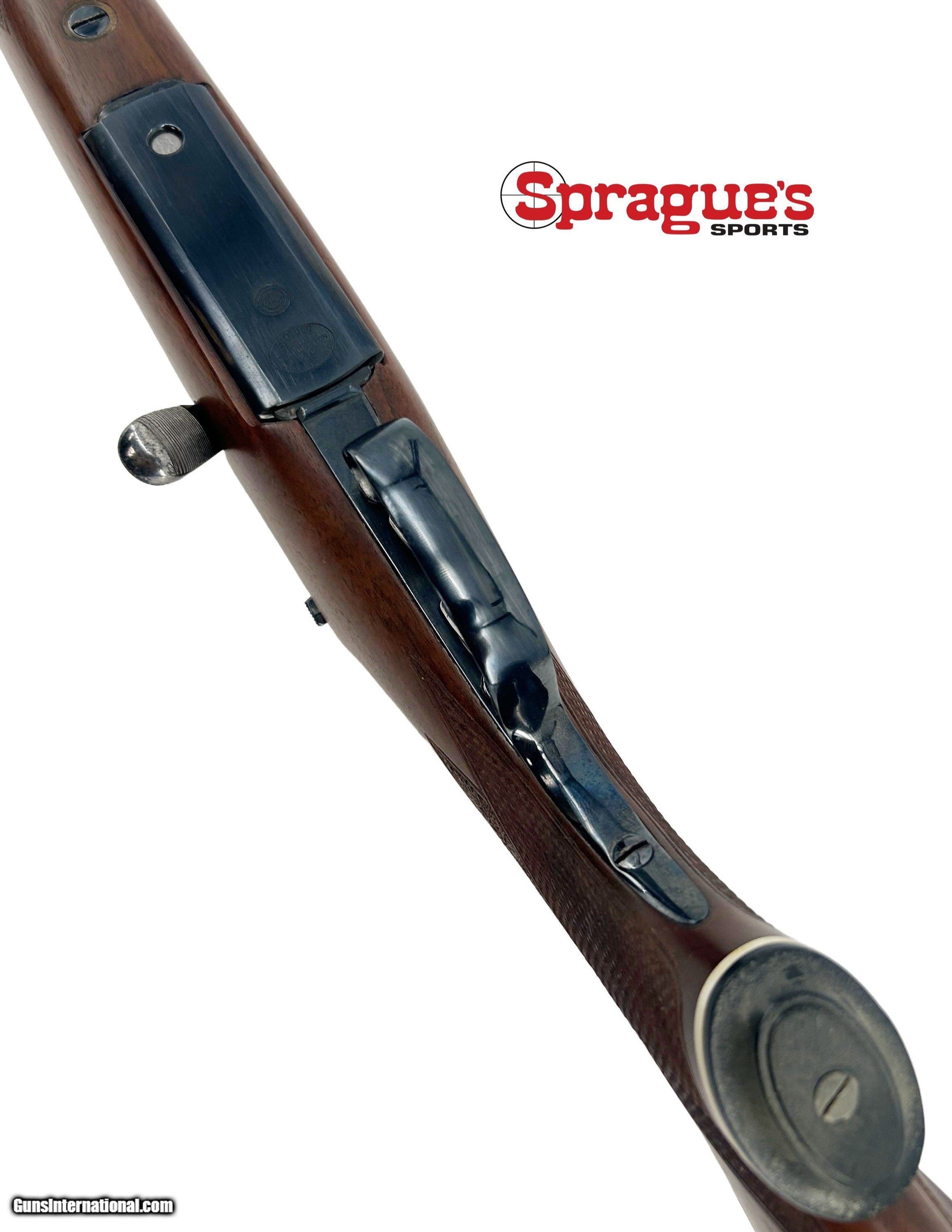 Description: Steyr-Daimler-Puch AG Mannlicher Schoenauer MC50 30-06 with Redfield 3-9 Widfeview Accu-Trac Manufacturer: Steyr-Daimler-Puch AG Model: Mannlicher Schoenauer MC Gauge: 3006 Springfield Barrels: 20 Inches Sight: Hooded Bead Front, 2 Leaf Blade Barrel Finish: Blued, a few very light handling marks Receiver: Beautiful blued finish, mechanically very good, Double set triggers, safety - very light handling marks Grip Stock:Absolutely gorgeous Mannlicher full length stock. very fine checkering on wrist and forearm, checkering is distinct - sharp - beautifully cut, has a few very light handling marks. Scope Mount: Paul Jaeger Side Mount Recoil Pad: White Line Pad Serial Number:30040 Sprague's Number:157585 +++++++++++++++++++++++++++++++++++ Add 3% for Credit Card Shipping will be actual cost with insurance +++++++++++++++++++++++++++++++++++ In-house pictures are of the item(s) being sold and the item(s) that will be shipped to the buyer! If there are no boxes, documentation, accessories, etc. shown in the pictures or described in the description, they are not included. Any stock pictures will be labeled as such. PRIOR TO PURCHASE!!! We will do our best to answer all questions Monday through Saturday during business hours, but are CLOSED ON SUNDAY. PLEASE ALLOW 7-10 BUSINESS DAYS FOR PROCESSING PRIOR TO BEING SHIPPED ONCE PAYMENT AND FFL INFORMATION HAVE BEEN RECEIVED. Buyers are responsible to ensure that you have fully reviewed the /listing before purchase. Buyers are responsible to know and ensure that they are in compliance with local, state, and federal regulations/laws and are of legal age for items purchased. We have not test fired any firearms unless specifically noted in the description. SOLD Rifle Caliber: .30-06 Springfield Manufacturer: Steyr Daimler Puch Model: MC |
